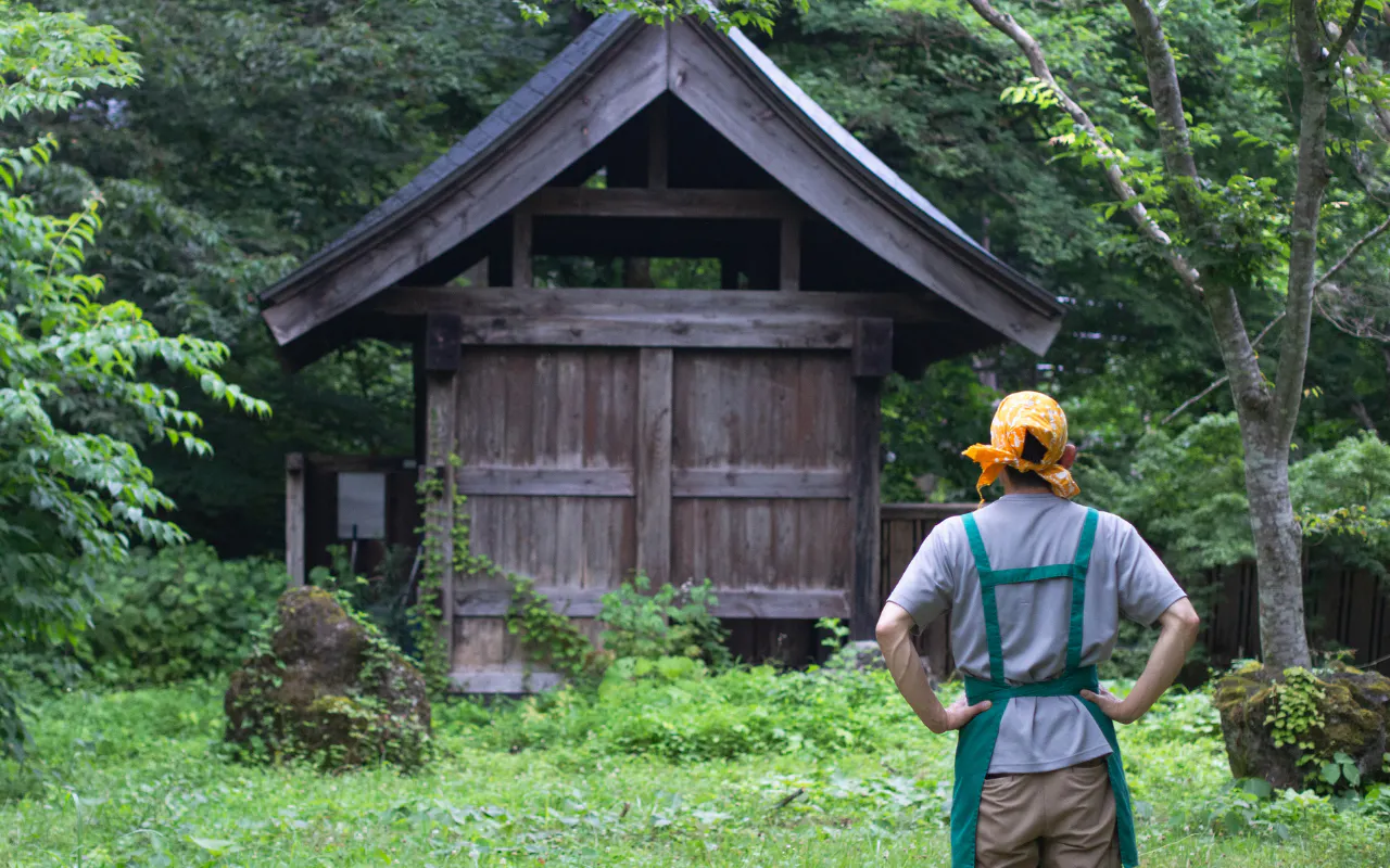 佐藤旅館の象徴でもあった露天風呂が、今も草むらに埋もれたまま。かつて人々が笑い合い、季節を感じながら過ごしたあの場所を、もう一度よみがえらせたい。 それが、今の私たちの一番の願いです。