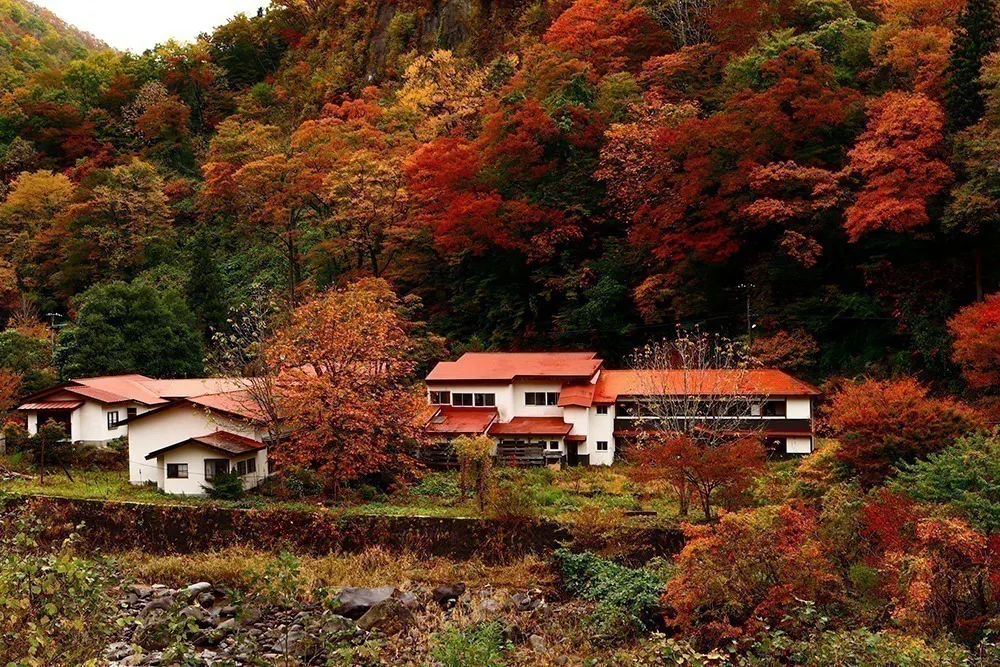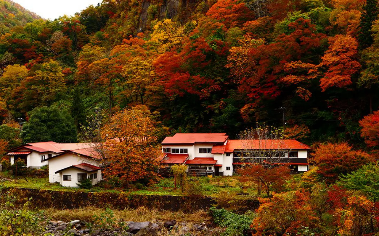 秋には、栗駒山の素晴らしい紅葉に囲まれます。