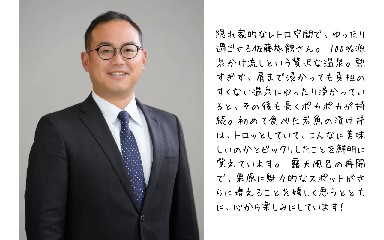 皆さまと一緒に、「温湯温泉 佐藤旅館」そして花山地区の明るい未来をつくっていけたら嬉しいです。