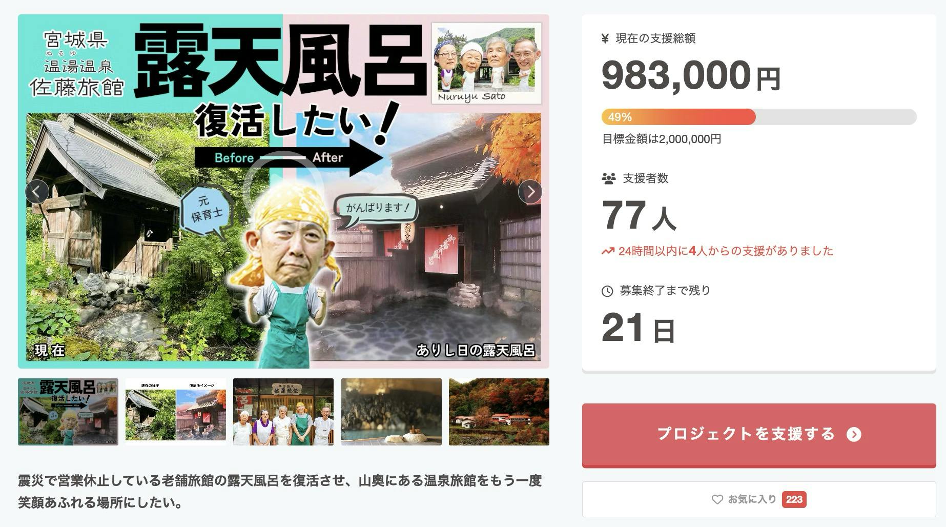 現在、支援者様77名、もう少しで100万円達成できそうです!