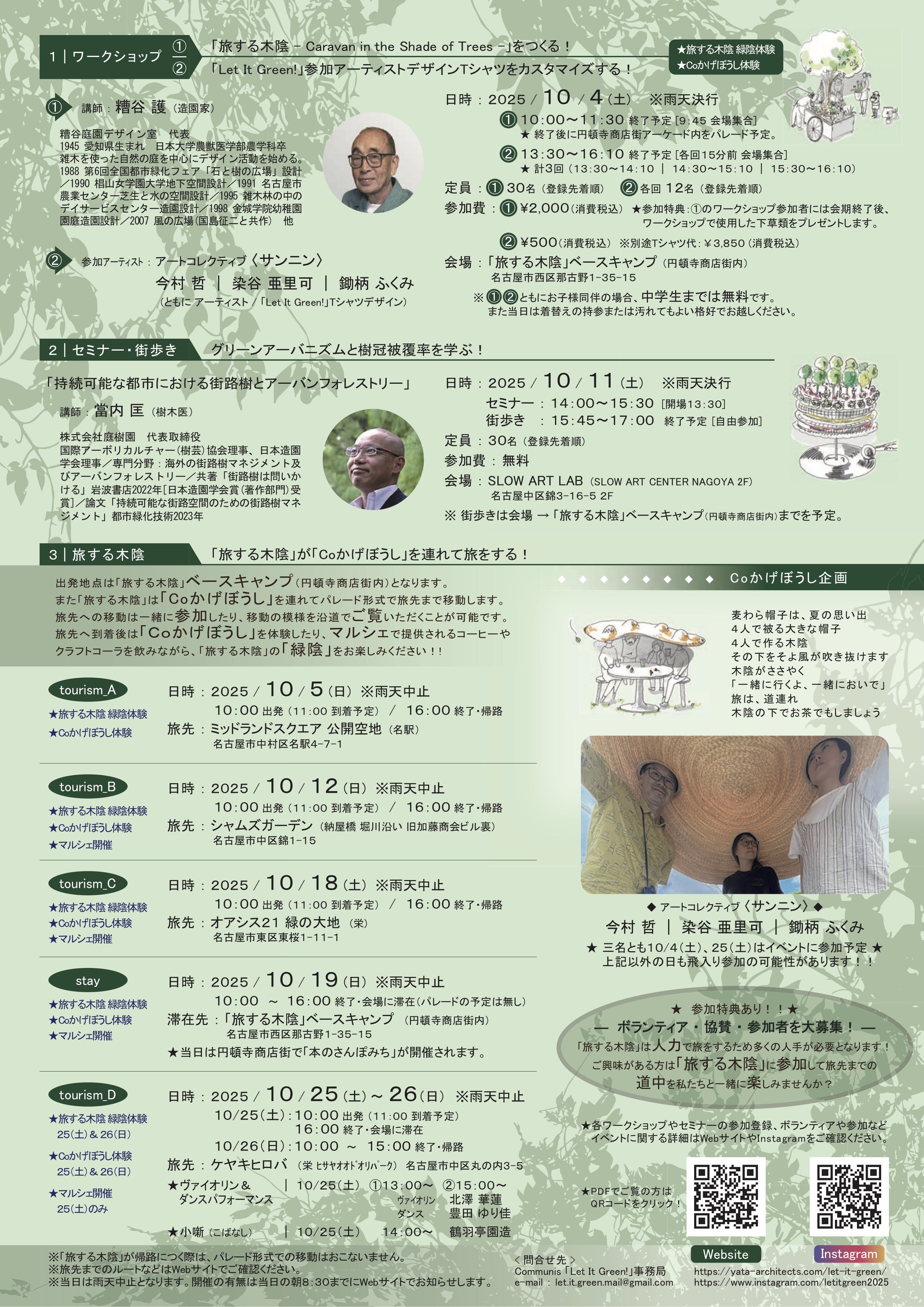 「Let It Green !」は、学びを中心とした前年度から大きく展開しワークショップや街歩き、マルシェ、セミナーなど濃い内容になっています。この企画が少しでも多くの方に「都市の緑」や「都市の景観・環境」さらには、地球環境を考えるきっかけとなりますように。そして、美しい地球を未来につなげられるよう、より多くの人たちと「Let It Green!」を叫びたいと思います!