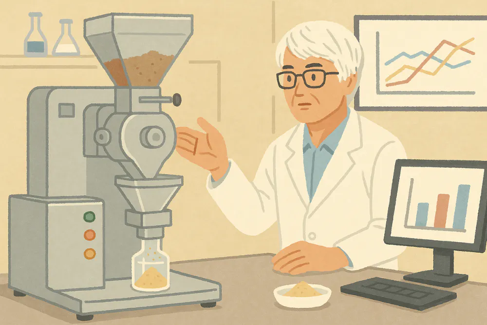 試験的に粉砕を進めておりますが、こびりつきや粒の残りといった課題があるため、専用の微粉砕機械の導入が必要です。今後は、粉末加工に関してOEM先への依頼を予定しております。