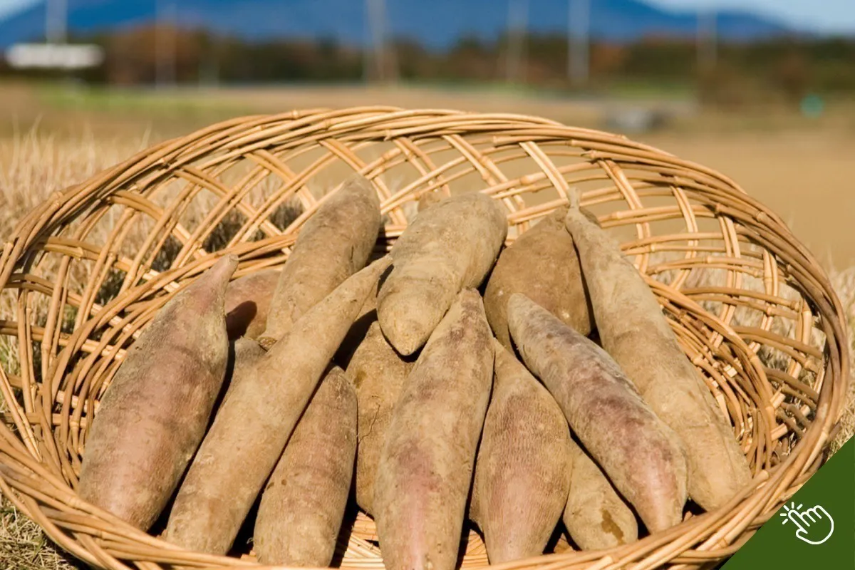 ヤーコンは南米アンデス原産のキク科の根菜で、見た目はサツマイモのようですが、シャキシャキとした食感とほんのり甘い味が特徴です。その甘みの成分は「フラクトオリゴ糖」と呼ばれ、腸内環境を整える作用があるといわれています。私たちが栽培するのは、つくば産の栽培期間中農薬不使用のヤーコン。農薬や化学肥料を使わず、大切に育てています。根だけでなく葉にもポリフェノールが含まれ、いま注目されている“からだにやさしい野菜”です。