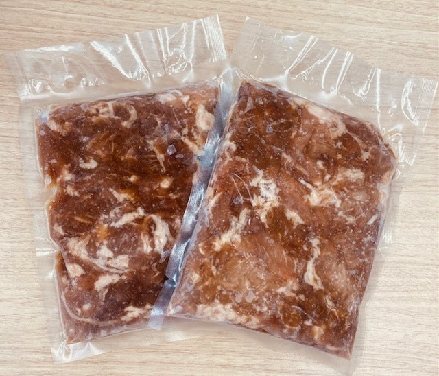 ※肉巻きはしっこミンチ⇒はしっこをミンチにして200g詰めにしました。