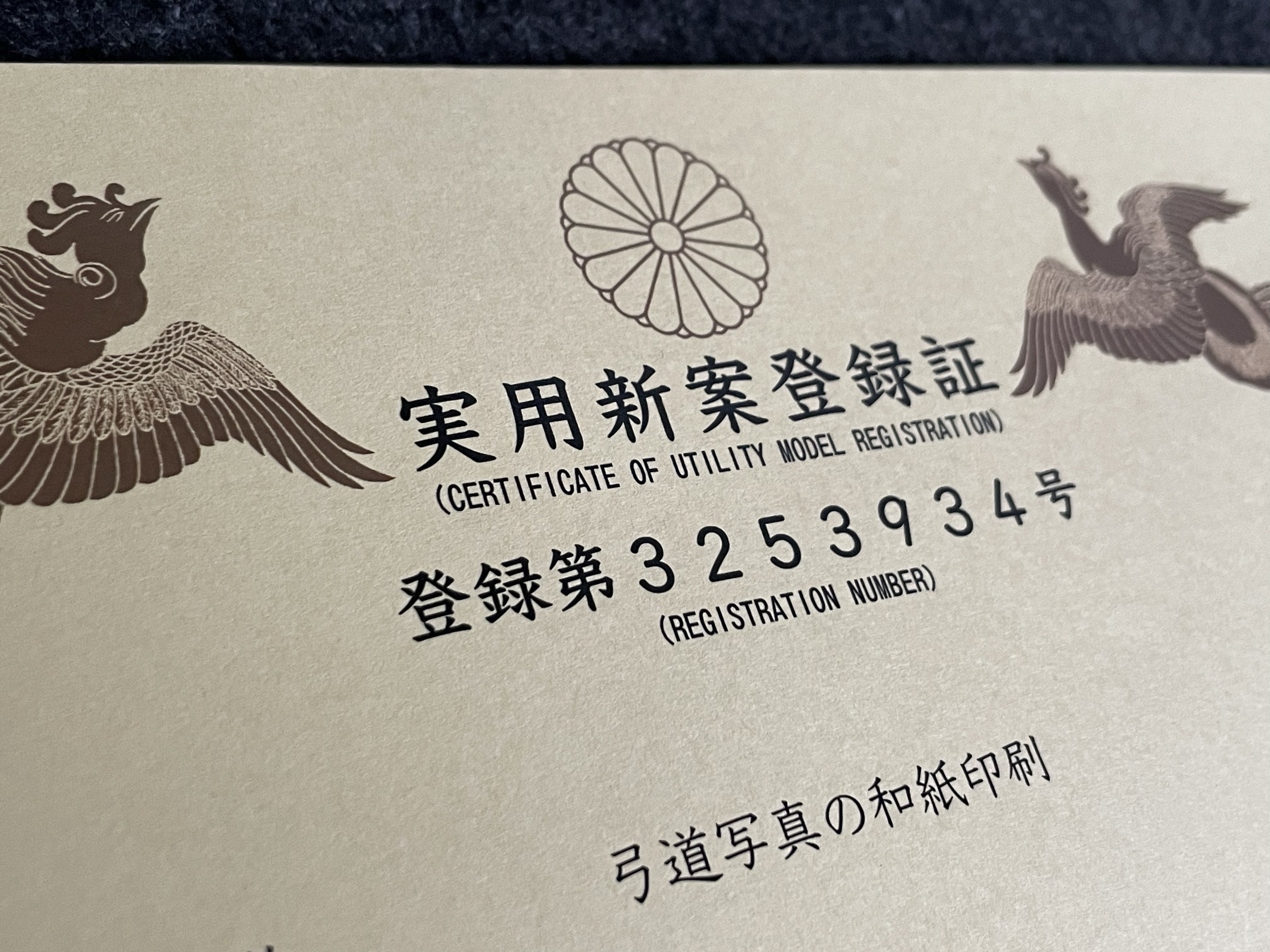 ここからは、本クラウドファンディングの目的とは別件の“制作活動の近況報告”です。以前から私個人の制作として取り組んでいた「弓道写真の和紙印刷」について、このたび 登録実用新案 第3253934号として登録されました。