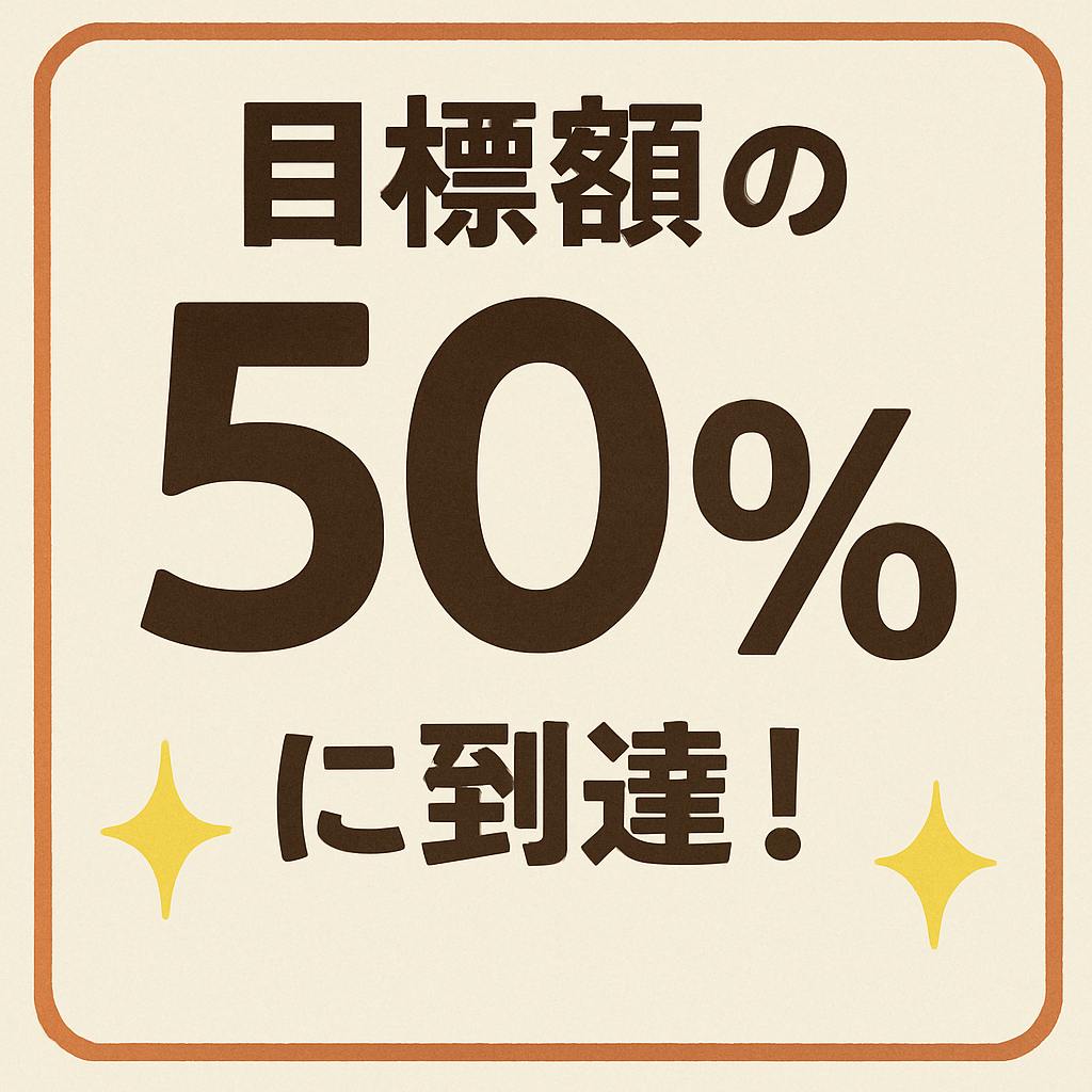 目標額の50%に到達!皆さまの温かいご支援のおかげで、ついにクラウドファンディングが 半分(50%) を越えました!ここまで来られたのは、ひとえに応援くださった皆さまのおかげです。心より感謝申し上げます。ここから残り半分、最後まで歩みを進めてまいります。引き続きご支援やシェア、そして応援のお言葉をいただけると大きな励みになります。これからも頑張ります!よろしくお願いいたします!