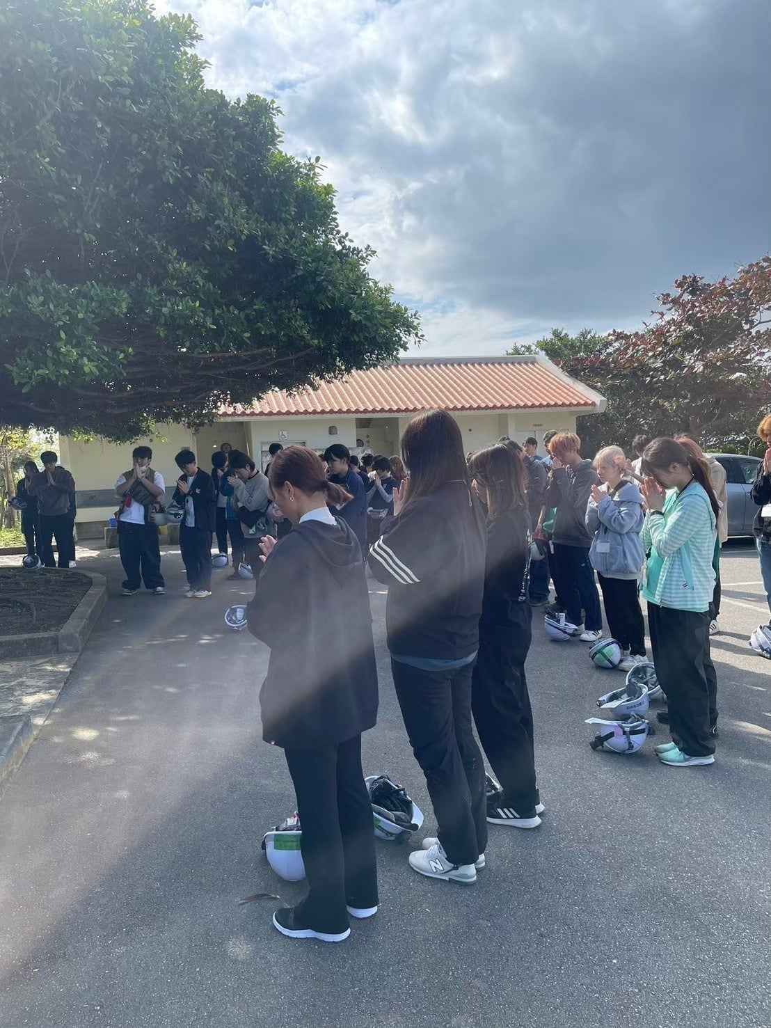 2026/04/01 20:293月14日〜19日の6日間にわたり、本ページにて告知しておりました3つの遺骨収集派遣のうち、「③3/14(土)~19(木)(6日間、遺骨収集活動・平和学習・慰霊式など)(以下:本隊)」を実施しました。本活動には、現地学生2名を含む大学生56名(うち8名は先発隊からの継続)と事務局員1名の計57名が参加しました。 活動初日は、学生が全国各地から那覇空港に集合し、宿泊先の公民館へ移動しました。夕食前に結団式を実施し、遺骨収集に必要な基礎知識や骨格概要、沖縄戦史に関する理解度テストを行いました。また、全隊員のうち13名が作成した、沖縄戦や沖縄隊が歩んできた道に関する資料を全員で閲覧しました。これは、平和学習などでインプットした知識や生じた感情を各々が思い描く方法でアウトプットして形に残すことを目的として考案した企画になります。夕食を挟み、班ごとに活動初日の心境や資料閲覧の感想などを共有したうえで、現在も世界で続く紛争に関する議題で意見を交わしました。このように本活動では時事的な課題にも目を向けております。戦史や骨格概要を確認する理解度テストに取り組む学生 2日目は、平和学習のために沖縄県平和祈念資料館、ひめゆり平和祈念資料館、南風原文化センター・沖縄陸軍病院南風原壕群20号、一中学徒隊資料展示室を訪問しました。戦時中に野戦病院として使用されていた沖縄陸軍病院南風原壕群20号では、当時の薬や注射器、また負傷した兵士が天井に彫った文字を資料館での視覚的な観点とは異なり、肌で空気を感じ、光景を想像しました。一中学徒隊資料展示室では、約3か月間かけ完成させた千羽鶴を寄贈させていただきました。こちらの資料室では我々よりも年下の学生たちが戦前に送っていた学校生活の様子や一人一人のエピソードなどを聞くことができます。展示されている家族への遺書や遺髪・爪は様々な夢を抱いていたであろう若者が戦いに向かってゆき命を落とした事実があったことを我々に伝えてくれました。宿舎に戻ってからは、初日同様に班ごとに意見交換を行いました。本活動では遺骨収集に加えて、平和学習や学生同士の意見共有の時間を通して、過去の出来事や現在の課題に真剣に向き合う時間を大切に積み重ね、戦争の事実や平和の尊さを深く理解し言葉にできる継承者となることを目指しています。この日新たに得た知識や抱いた想いをどのような形で、言葉で周囲や後世に広めていくか、考えを深めました。一中学徒隊資料展示室にて職員の方と話す学生たち 3、4、5日目は、糸満市摩文仁にて4つの活動場所に分かれ、遺骨収集を行いました。そのうちの1現場は、「一中学徒通信隊終焉之地」であり、2日目に伺った一中学徒隊資料展示室と関係している場所です。戦後80年間で堆積したごみを回収したり、岩を運んだりしながら、環境を整備しつつ戦争当時の地表まで地面を掘り下げることから活動がスタートします。収集活動においては、活動前3回にわたって実施された勉強会で得た知識や、大学生56名の体力・マンパワーが大いに生かされました。全員が熱意と敬意を持って活動に臨んだ結果、3日間にわたり、戦没者と思われる複数のご遺骨や遺留品をお迎えいたしました。活動終了後、宿舎では初日、2日目同様、班・現場ごとの意見交換を行いました。本活動で大事にしている「戦没者やご遺族の想いに寄り添って遺骨収集を行う」とはどのようなことかに加え、「平和とはどのような状態か」「海没者の遺骨収集」についてなど、現代の課題を踏まえて討論しました。遺骨収集活動場所にて当時の地層まで丁寧に掘り進める様子 5日目の午後には慰霊式を執り行い、戦没者の方々へ黙祷と追悼の辞、献花を捧げました。3日間でお迎えしたご遺骨を公益財団法人沖縄県平和祈念財団戦没者遺骨収集情報センターに引き渡し、ご遺族のもとにお還しするために以後専門家による鑑定が行われる予定です。慰霊式で献花を捧げる 6日目は、宿舎清掃の後、解団式を行いました。解団式では、各活動場所の遺骨収集活動報告や6日間を振り返り最後の意見交換・全体共有が行われました。各々が考える「平和」とは何なのか、継承者になるために何をしようと思ったのか。現地で活動するだけでなく終えた後に行動を起こす重要性を確認する時間となりました。そして、全員で那覇空港に移動し、全国各地へと帰っていきました。 最後となりますが、本プロジェクトへの支援・拡散にご協力いただいた皆様、この度は誠にありがとうございました。計57名・計10日間という大規模な活動を遂行することができ、80年間地中に眠っていたご遺骨や遺留品を陽の元にお迎えすることができました。参加した学生は、多くの血が流れた場所で戦争の傷跡と平和の尊さを体感したとともに、悲しみを教訓として風化させないための継承の必要性、周囲・後世に語り継ぐ使命感を抱くようになりました。 本活動に参加した学生は全員異なるバックグラ