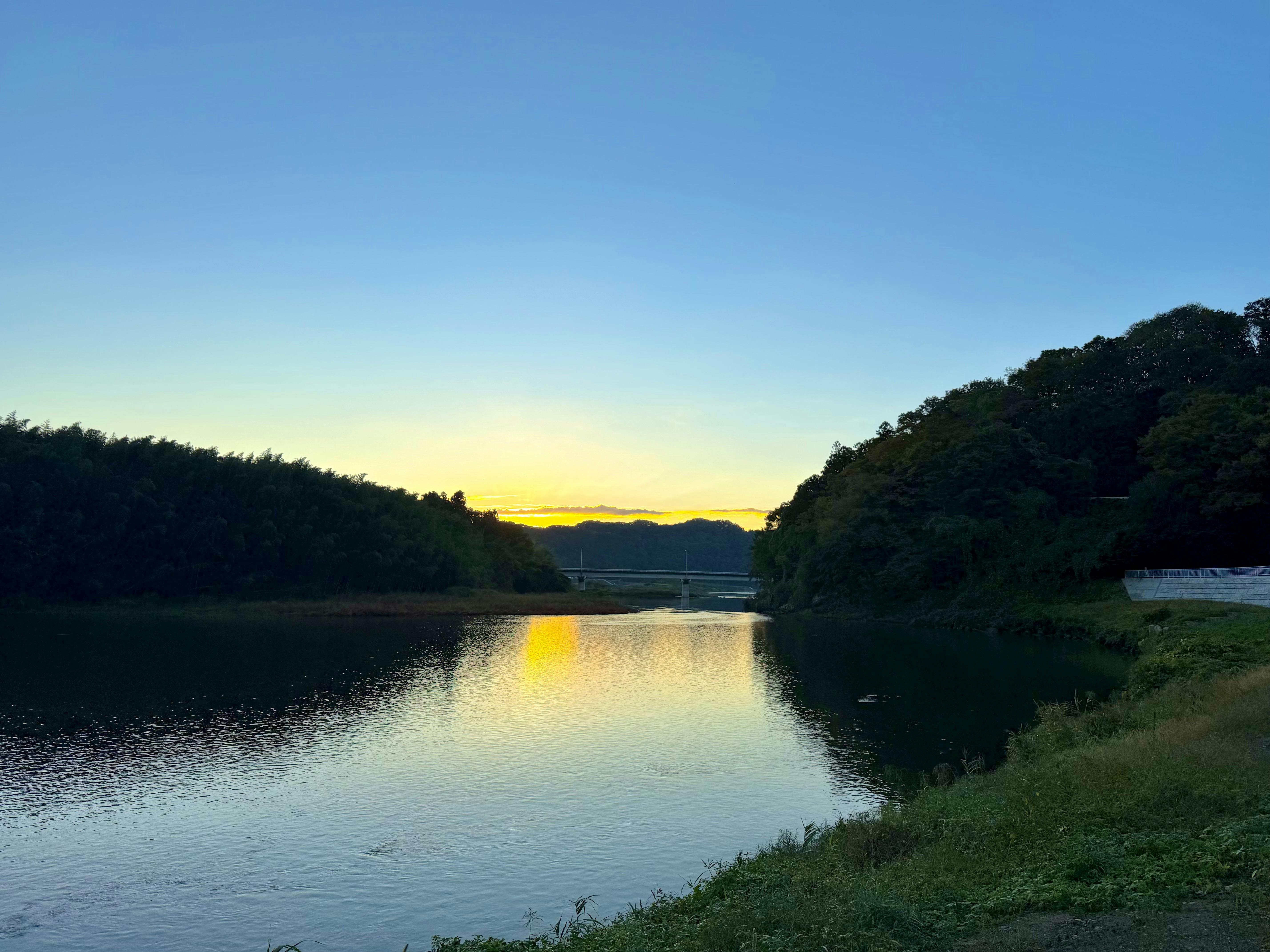 美しき奥久慈の里山、清流久慈川の水面。