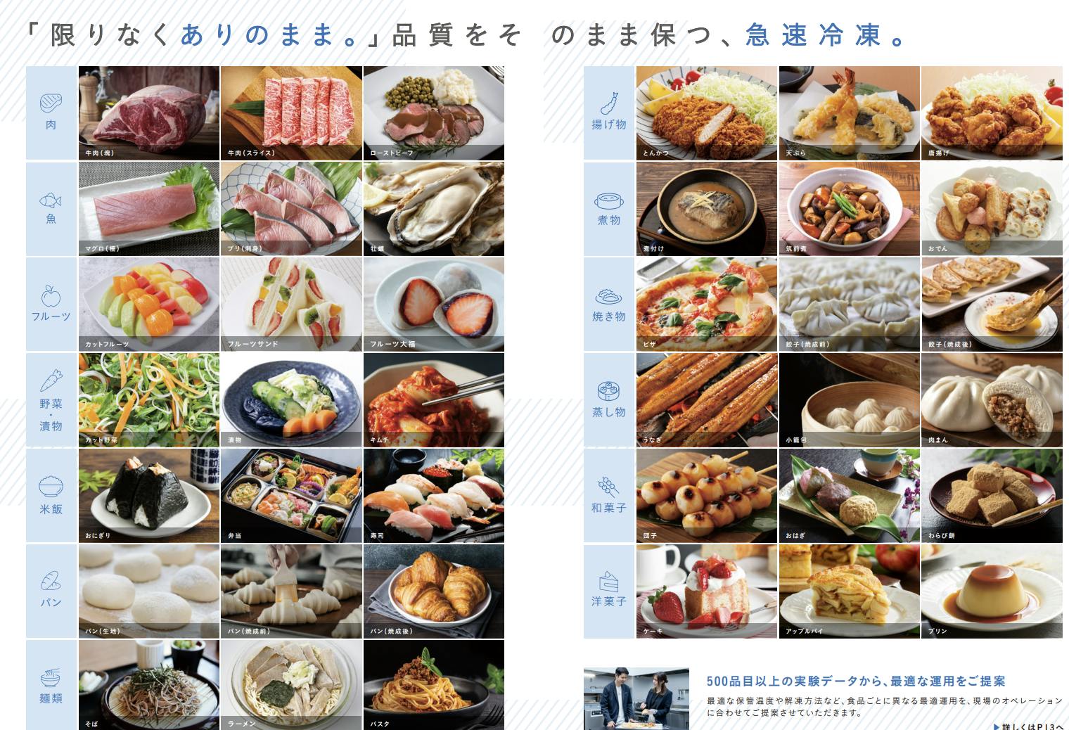 魚や肉や野菜はもちろん、ラーメンやケーキさえも鮮度そのままに凍らせられるプロ仕様の瞬間冷凍機です。