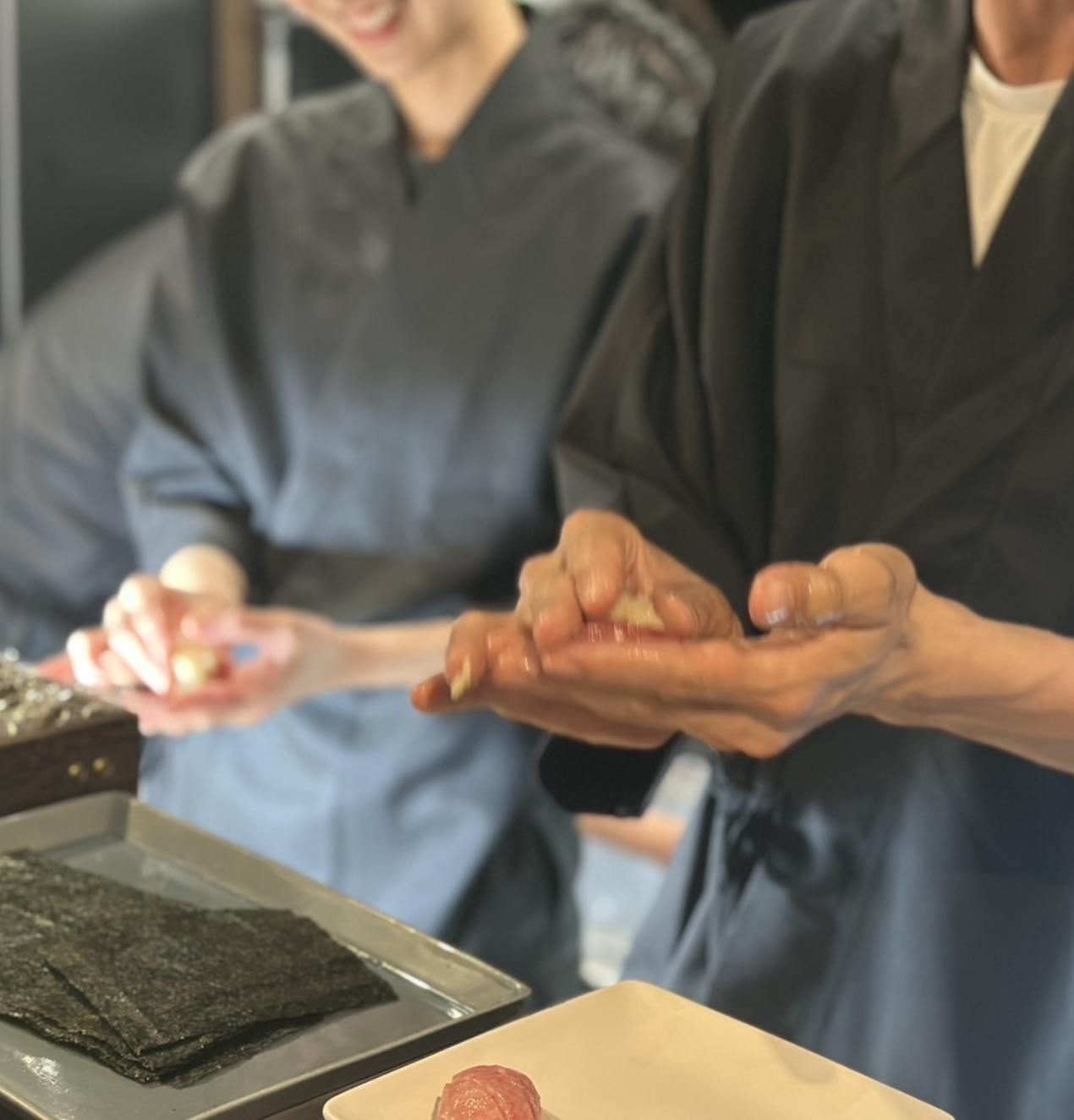 現在、5名のチームで動いており、うち4名は寿司スクールでしっかりと基礎を学んだメンバーです。