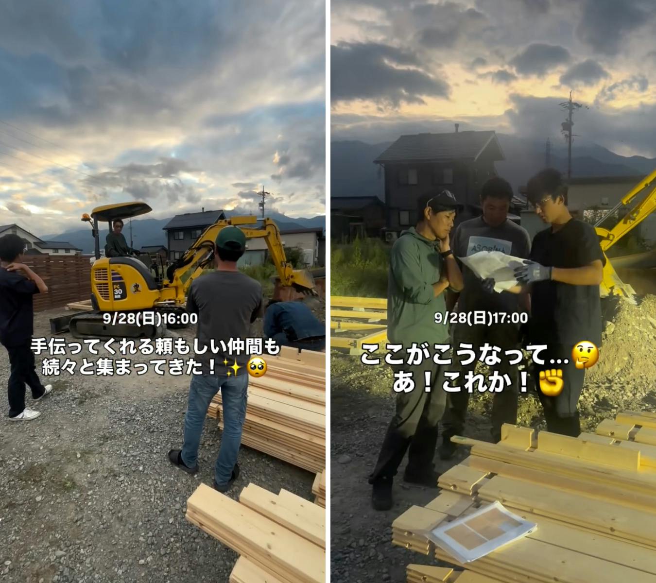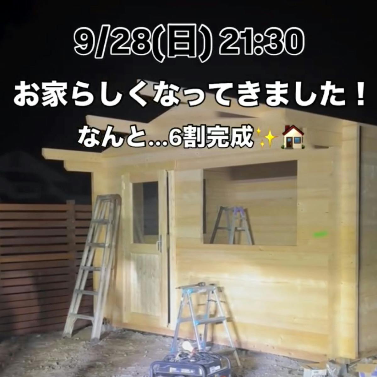 夕方からは仲間たちに集まってもらい、夜遅くまで作業を行いました。みんなで力を合わせて作っているのはログハウスです!オープンまでに完成予定ですのでお楽しみに!!