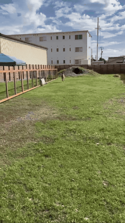 たくさんの汗と想いで誕生したドッグラン。さっそく来場してくれたワンちゃんが、広々としたスペースで軽快な走りを見せてくれました!!