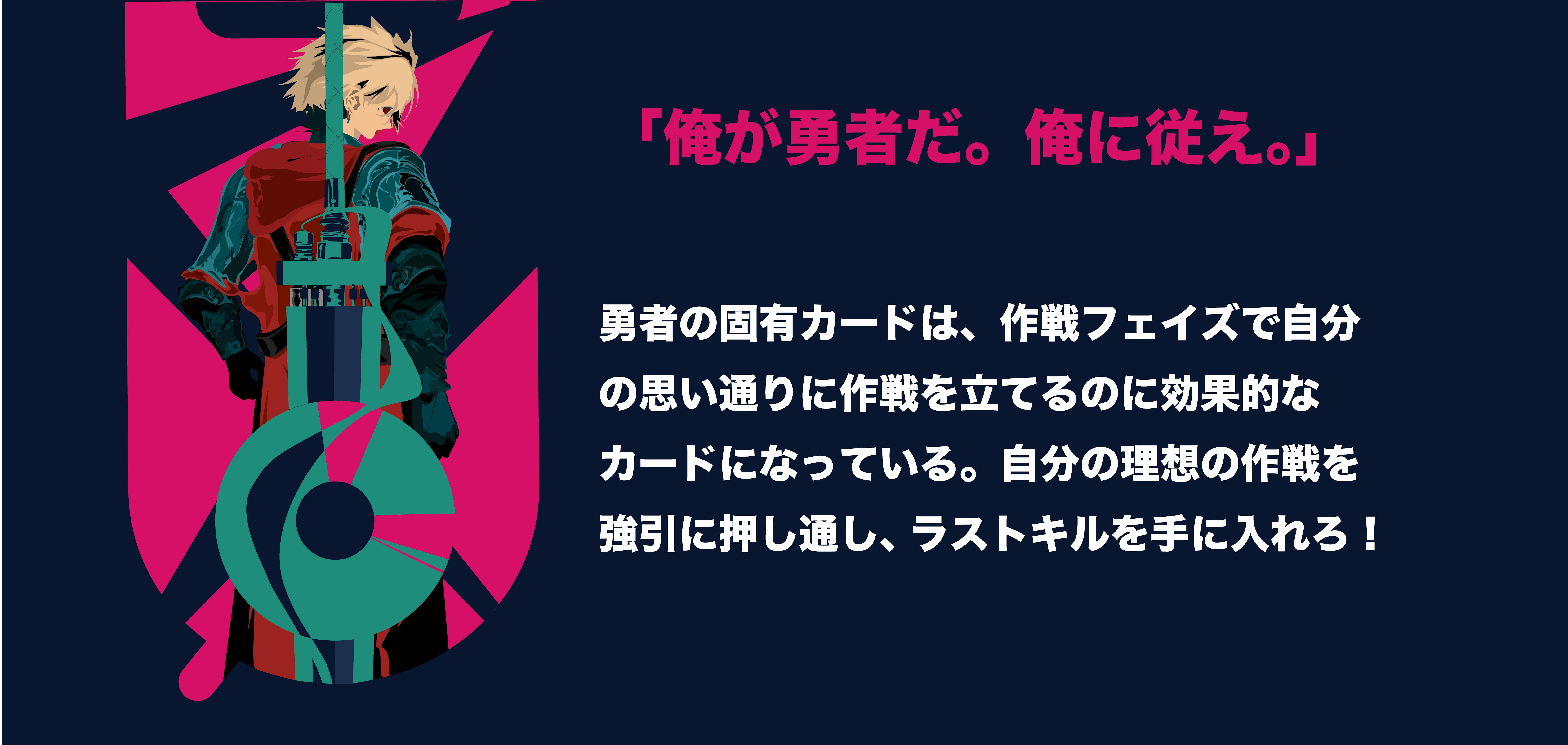 勇者セットの情報解禁!【冒険者セットの内訳】冒険者セットの内訳は全ての冒険者セット共通で・プレイヤーカード1枚・固有カード3枚・モンスターカード2枚になっています。【アビリティについて】各冒険者のプレイヤーカードにはアビリティが記載されています。アビリティとはゲームプレイ中永続でその冒険者を使用するプレイヤーに発揮される効果です。【固有カード】冒険者は獲得しているEXP数によってレベルが上がります。固有カードは冒険者のレベルアップによって獲得できる手札カードです。勇者のコンセプトは、傲慢に自分自身の作戦を仲間に押し付けて、作戦フェイズを支配する冒険者です!勇者セットを使いこなして、ラストキルを目指しましょう!