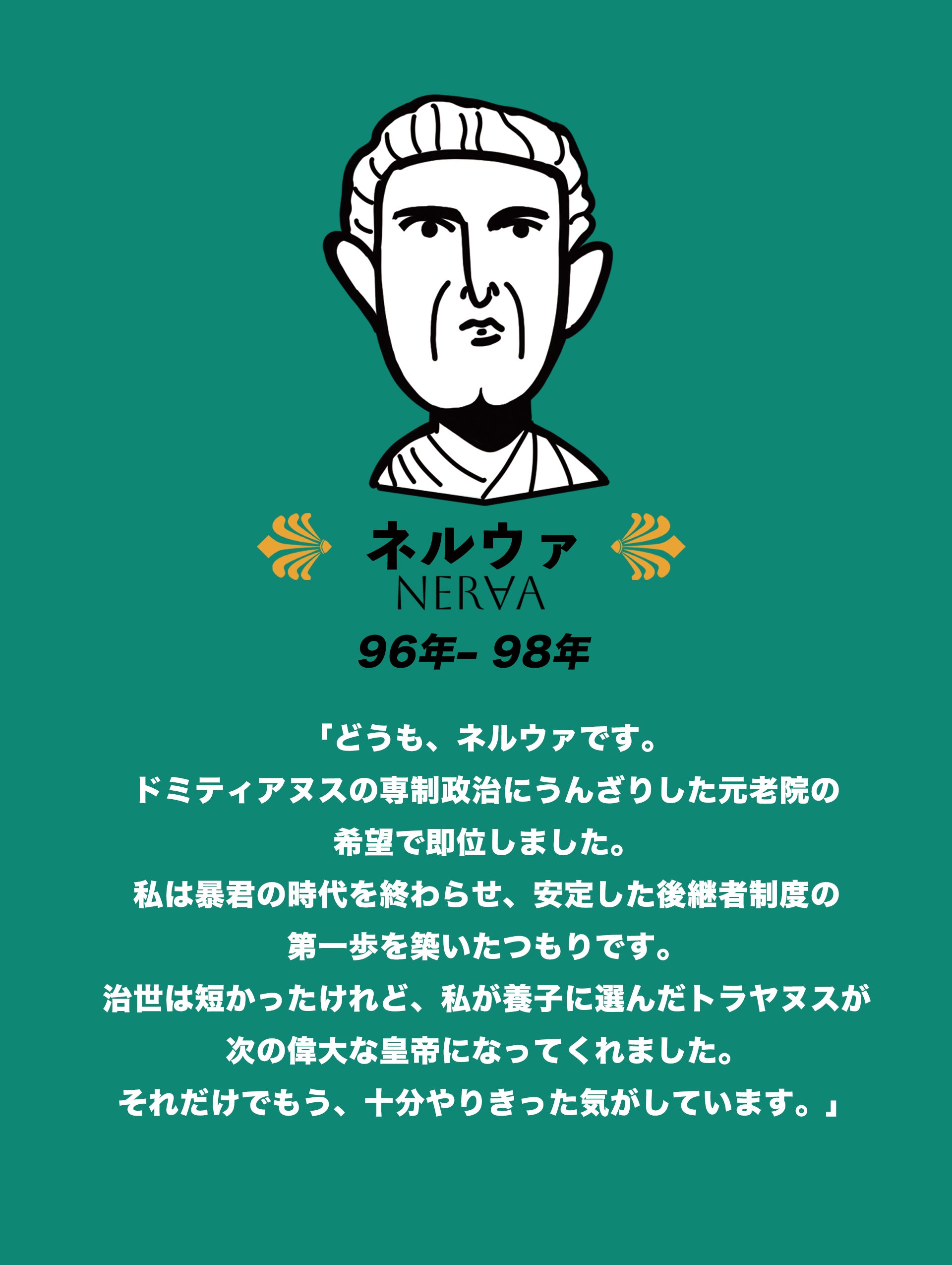 本日は五賢帝のひとり『ネルウァ』について人物紹介です!