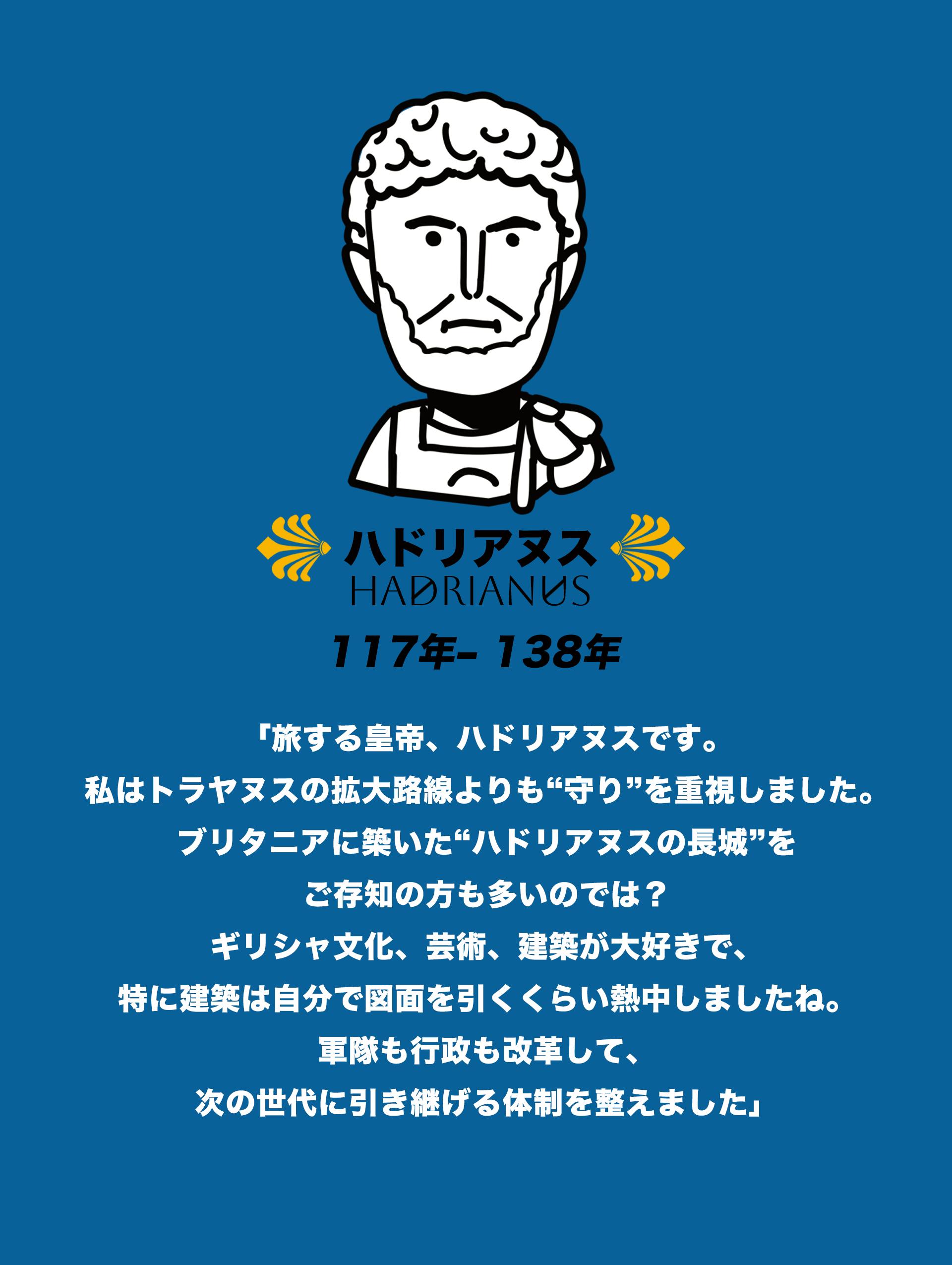 本日は五賢帝のひとり『ハドリアヌス』について人物紹介です!