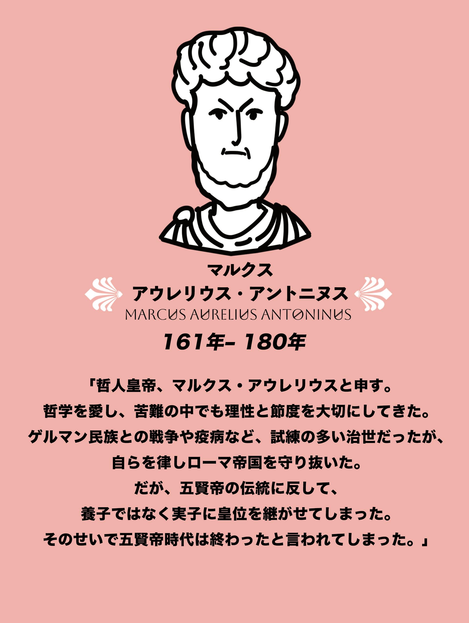 本日は五賢帝のひとり『マルクス・アウレリウス・アントニヌス』について人物紹介です!