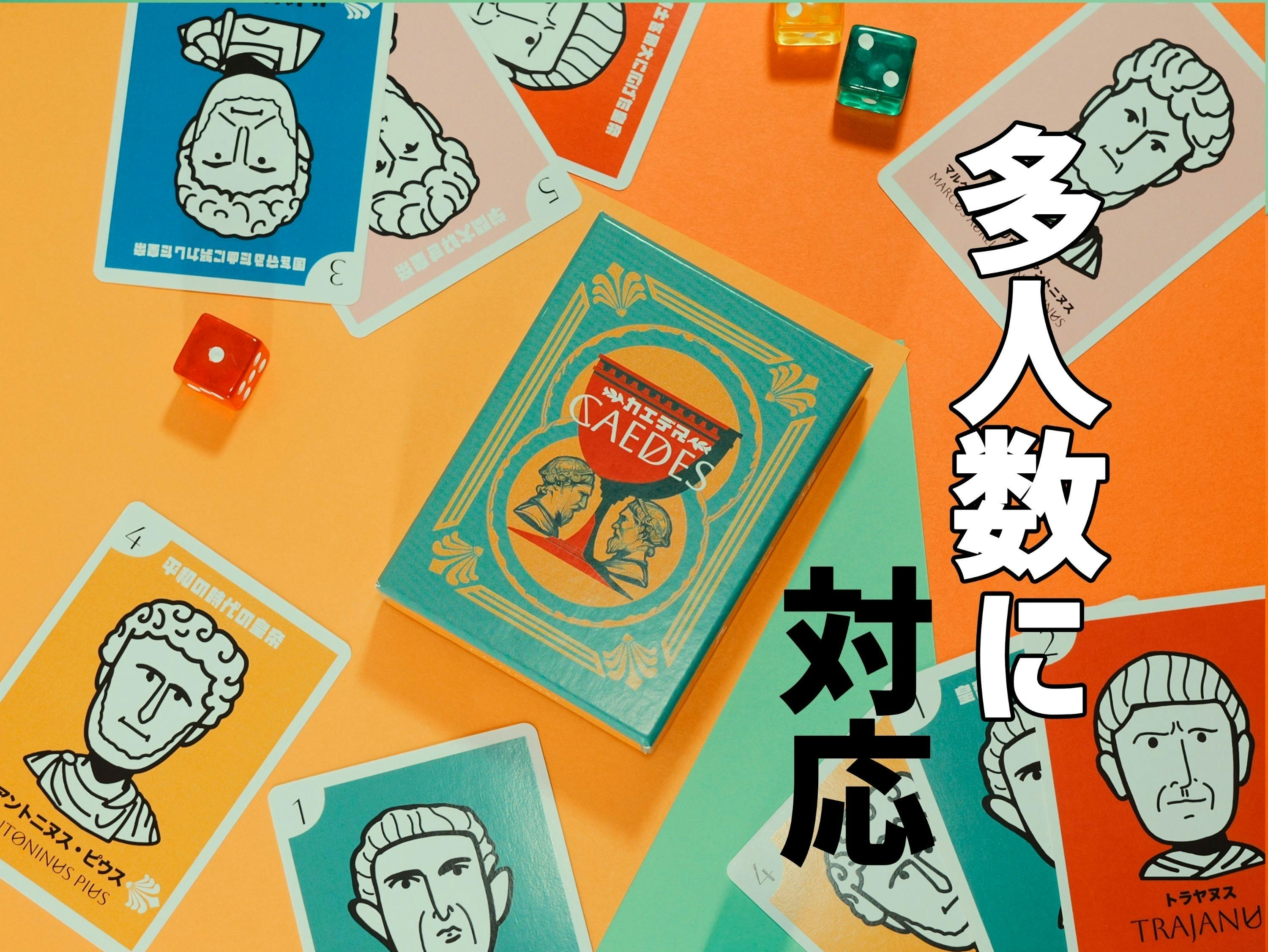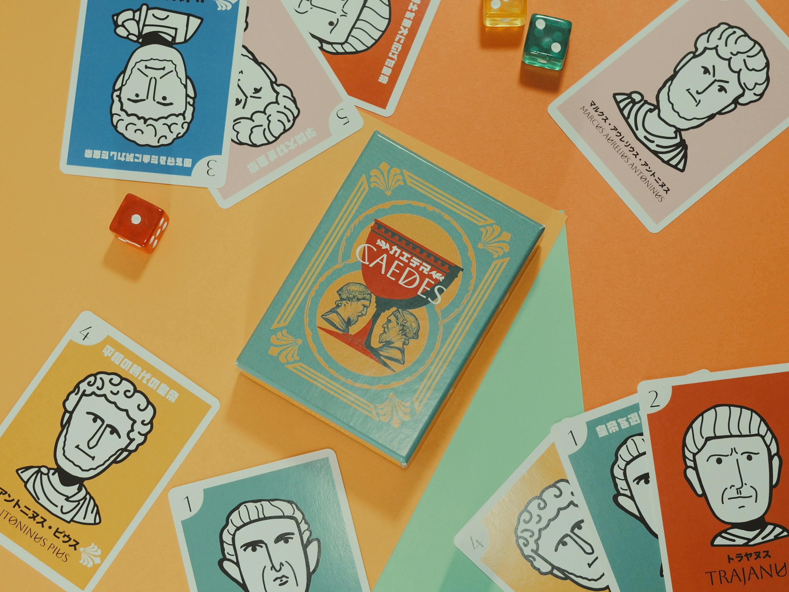 ローマの五賢帝をテーマに、相手の性格を読む心理戦と誰でもすぐ遊べる簡単ルールを融合。