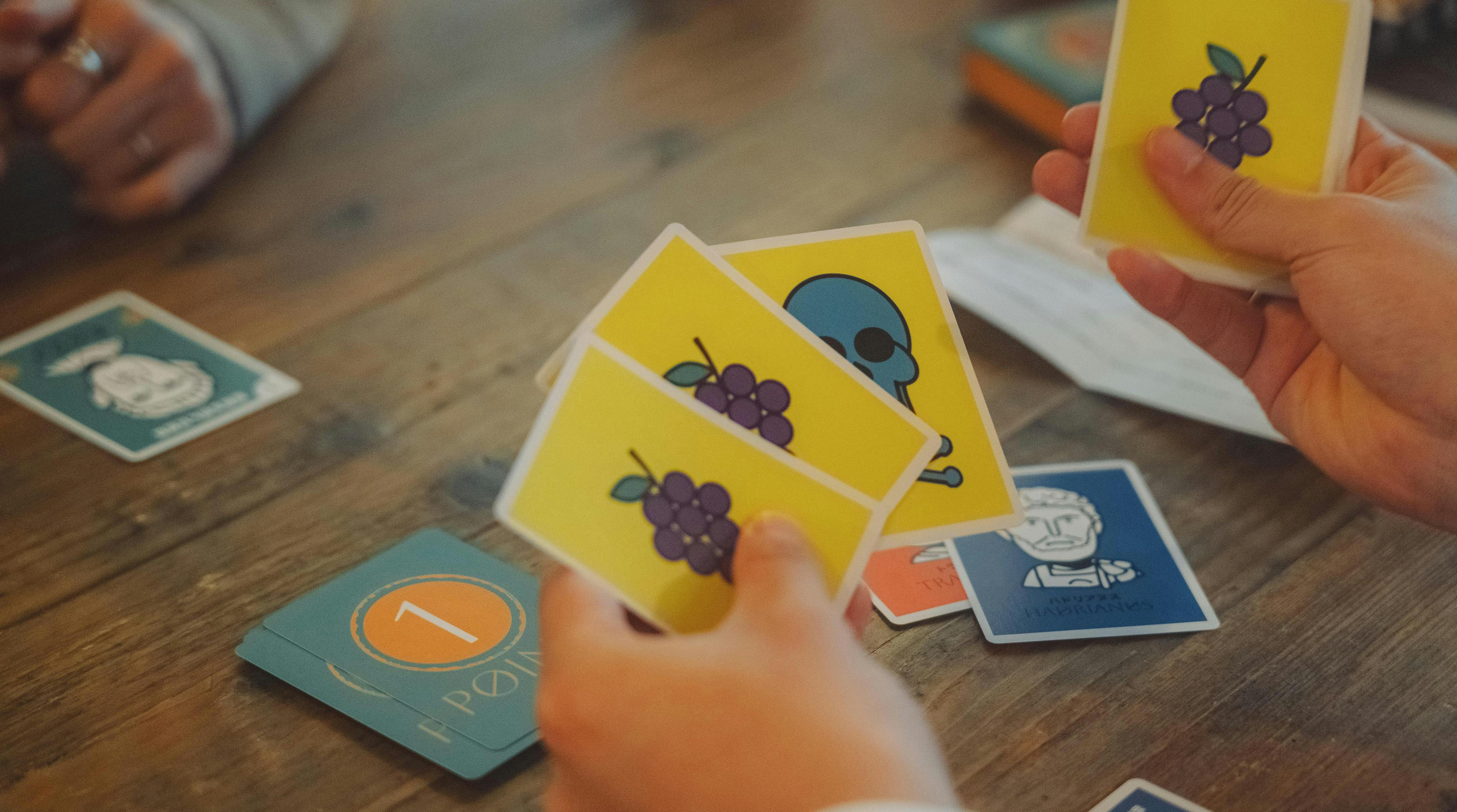 ローマの五賢帝をテーマに、相手の性格を読む心理戦と誰でもすぐ遊べる簡単ルールを融合。