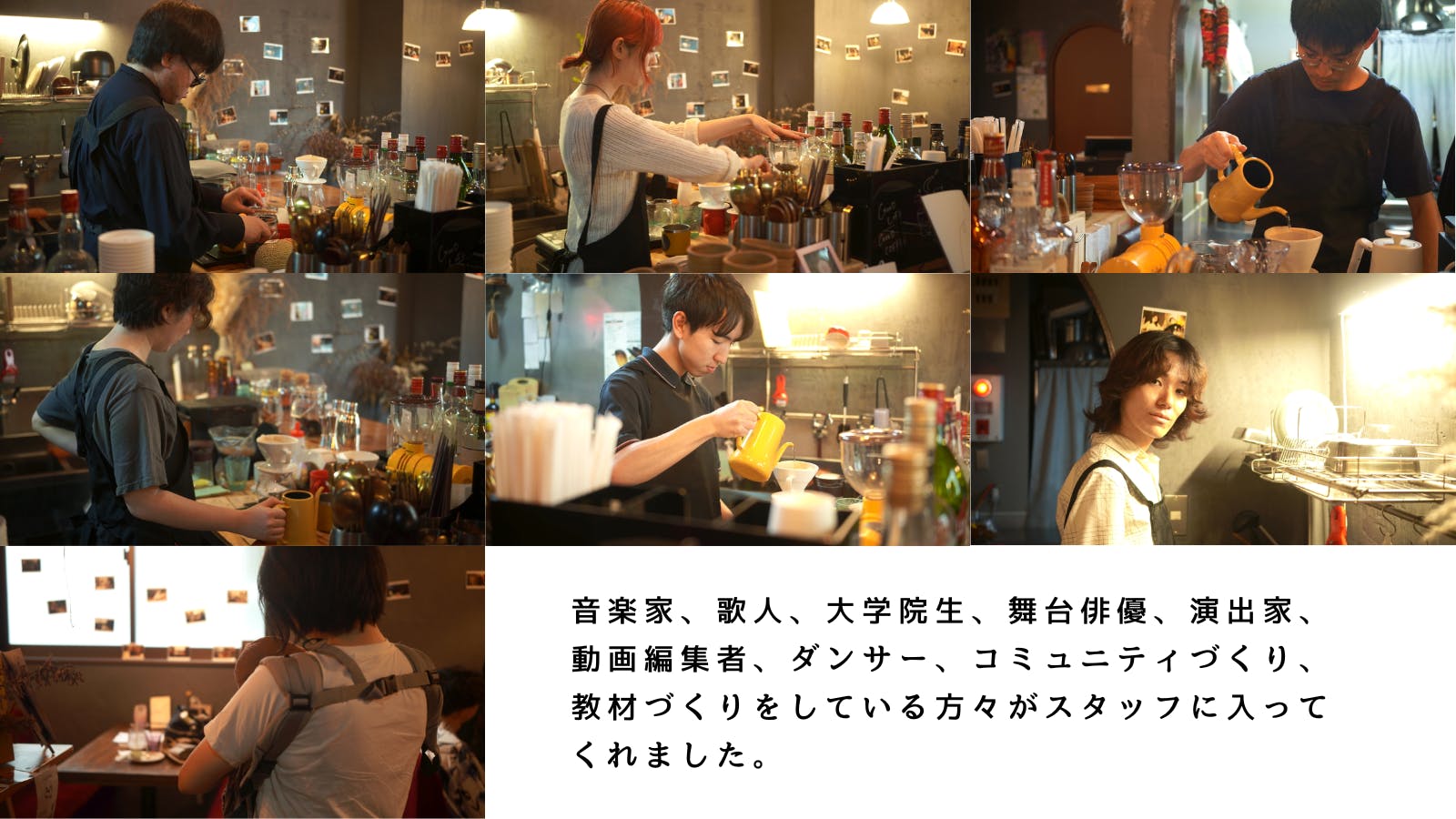 「まるごとのあなたで」をコンセプトに、「居場所づくり」と表現活動にふれられる「文化的な場づくり」を行っています。お客様が一息つきたいときは寄り添い、知らない世界にふれたいときはお供する。隠れ家でありながら何気ない瞬間がドラマチックに感じられるお店を目指しています。