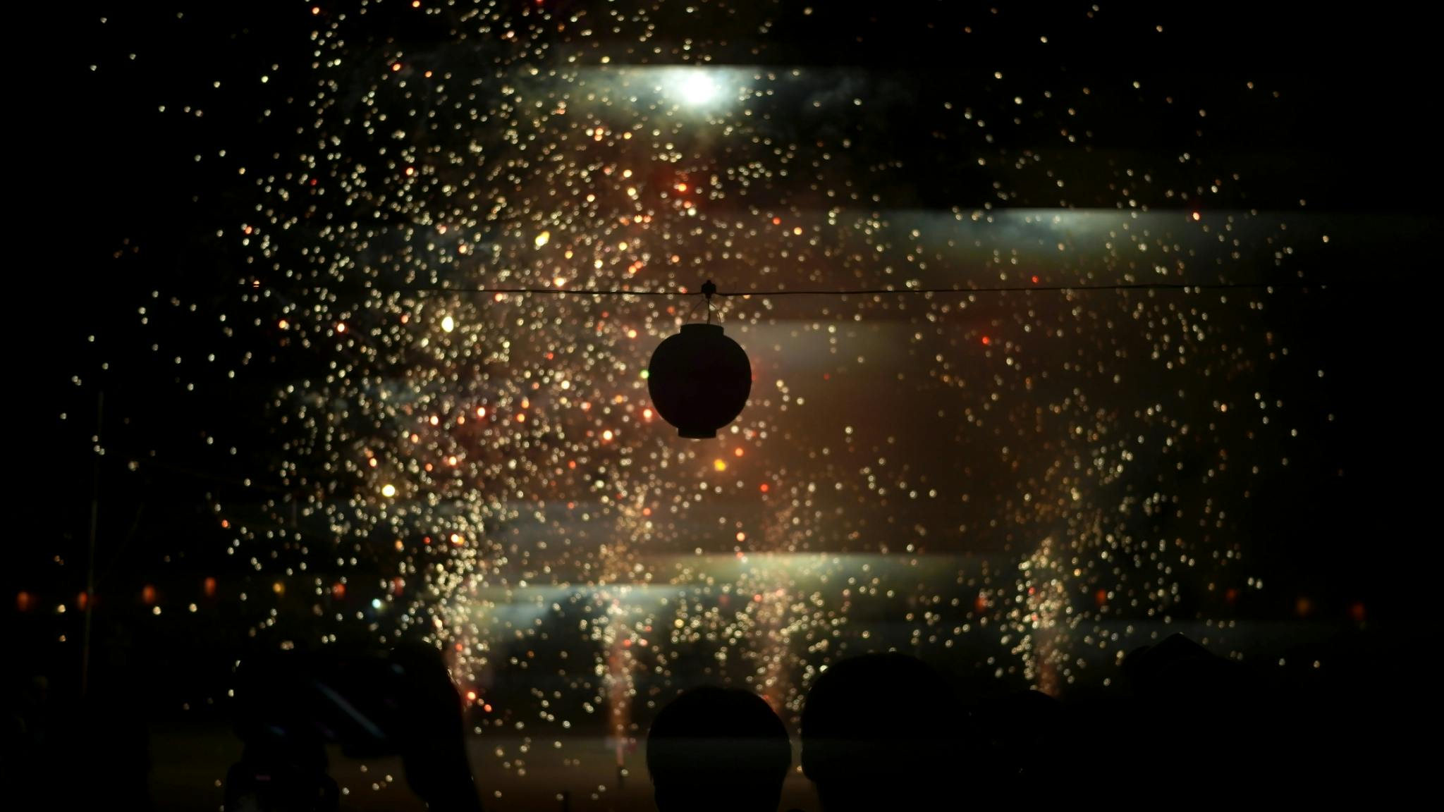 会場の公園中央で噴きあがる花火。