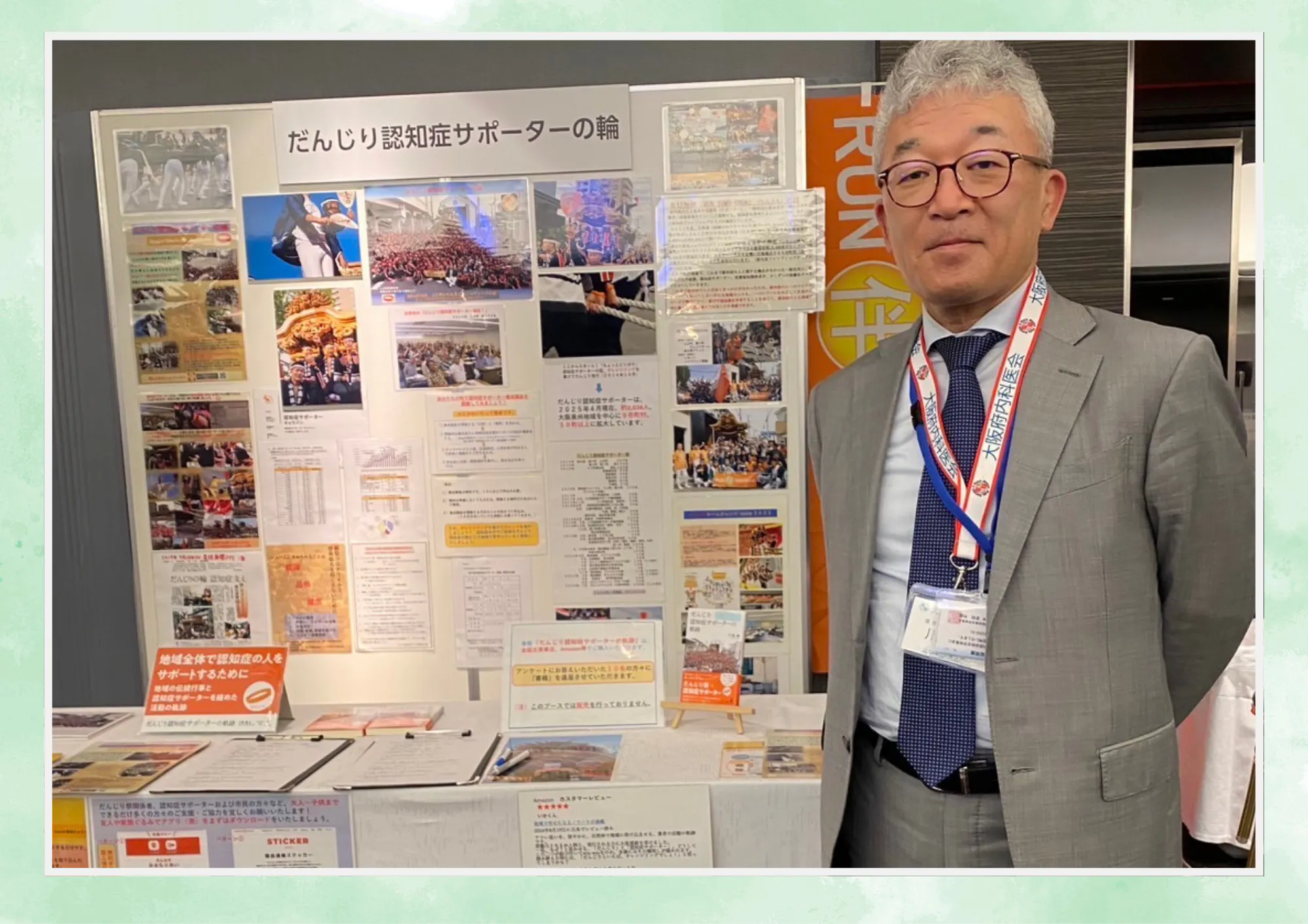 私は、大阪府からの要請で認知症サポート医の資格を2009 年に取得。地域医療の充実のためには医療介護を含めた多職種の連携が必要であり、特に認知症ケアについては地域包括ケアシステムの実践を目指す必要性があると気づき、2014 年だんじり認知症サポーターの取り組みを開始。2015 年RUN 伴(認知症当事者、家族、支援者が一緒になって走り、タスキをつなぐ全国イベント)に参加。2018 年から FM いずみおおつ『DR.トオルの認知症カフェ』の生放送番組を5年間行い、2024 年4月からはICORAインターネット放送局で、『認知症バリアフリーの街~Dr.トオルとICORAの輪』(毎週金曜日21 時~)を放送中で、市民の方々に認知症についての啓発発信と、認知症サポーターを増員する活動を行っている。