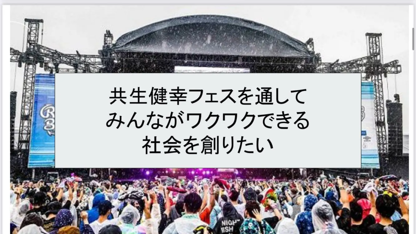 GOフェスは、“楽しい”という入り口から、社会の課題に触れるフェスです。障がい、医療、福祉、防災、教育、世代間交流…そんなキーワードが、自然に交わる空間を、みんなで育てていきたい。そして3年後には、泉大津フェニックスで1万人が集う健幸共生ユニバーサルフェスへ。この挑戦に、どうかあなたの応援をお願いいたします。