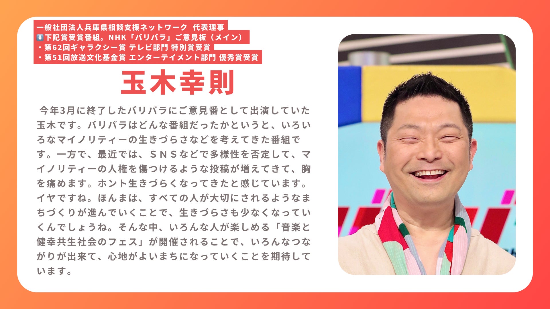 とても素敵な企画だと思います。応援メンバーの方々も様々な面のプロの方ばかりで、とても良いフェスになると思います。楽しみにしています!