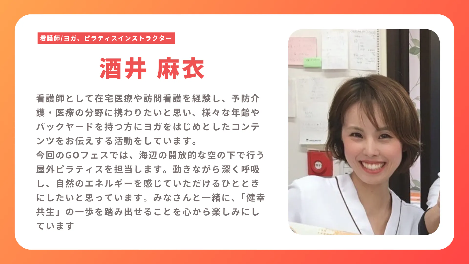 2025/11/08 10:42皆さまの温かい応援・ご支援のおかげで、たくさんの企業・団体の皆さまが「GOフェス2025」に協賛としてご参加くださいました。心より感謝申し上げます。GOフェスは、「健幸共生社会(誰もが健やかに幸せに生きられる社会)」をテーマに、すべての人が“つながる”ことを目指した地域発のフェスです。この想いに共感し、応援してくださる皆さまの力が、大きな支えになっています。協賛プランは、当日PR(ゴールド・シルバー・ブロンド)をはじめ、期間限定や熱烈・しっかり応援プランまで、さまざまな形でご参加いただいています。SNS、ホームページ等に名前記載プランをご支援いただきました。協賛一覧はこちら(順不同)↓↓↓【当日PRゴールドプラン・協賛】株式会社サニーデイスマイル株式会社ADDINCIL星空あぐり訪問看護ステーション株式会社PLAST合同会社ウェルノバ株式会社Koel【当日PRシルバープラン・協賛】医療法人泉清会 川端医院株式会社MediGoNPO法人CILリアライズ株式会社Walong放課後等デイサービス清流の家就労継続支援B型TOMOJ-Workout株式会社SCS株式会社Amuru訪問看護ステーション【当日PRブロンドプラン・協賛】医療法人優篤会三浦クリニック介護コネクティブ佐藤友章税理士事務所GrowSquare(グロウスクエア)ヘルスベース泉大津よしだ乳腺ホームクリニック株式会社プラテック45【9/25限定応援GOプラン・協賛】森永乳業クリニコ株式会社60才からの専門美容サロンふるきよき米谷暮らし研究所REHA PLACE metsä樋江井亮リアライズ!!LEAD ON!!!いずみ障害福祉サービス事業所団体連合会ディーズパレット株式会社いずみテラス株式会社AllonsDELTA株式会社 ONE flat【熱烈応援プラン・協賛】STEPえどがわ 今村登特定非営利活動法人あるる株式会社視える化 月生達也NPO法人はみんぐ南河内機能強化型認定栄養 CSからふる廣田将KAMAKURA BASE training&health consuitingアベリア薬局【しっかり応援プラン・協賛】オリジナルTシャツ制作ランプワークス小西智美吾妻勇吹以上、本当に多くの方々からの応援ありがとうございます!引き続き、2025年11月9日(日)@泉大津シーパスパークでの開催に向けて、スタッフ一同、全力で準備を進めてまいります。皆様、何卒最後まで応援よろしくお願い申し上げます。 もっと見る