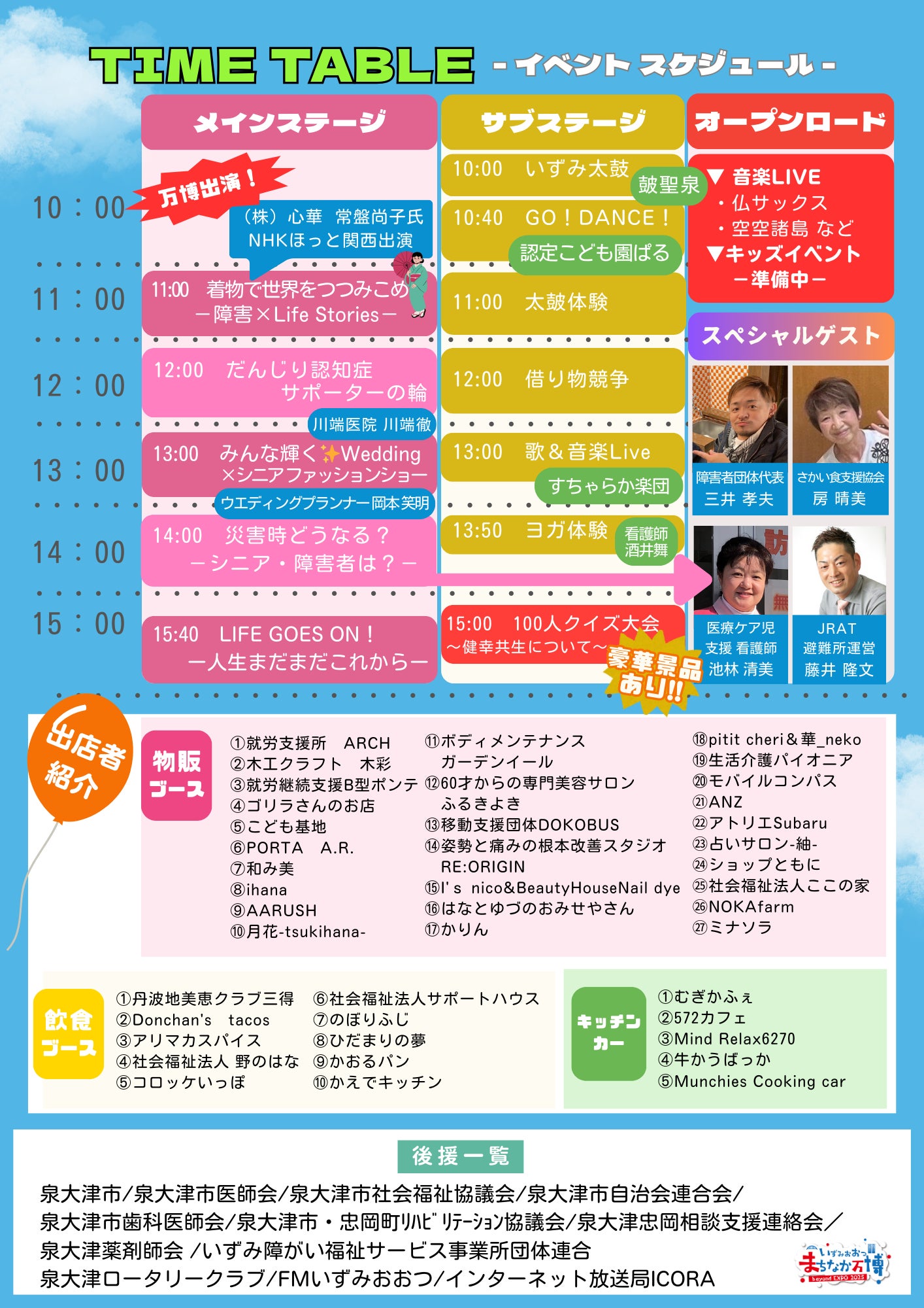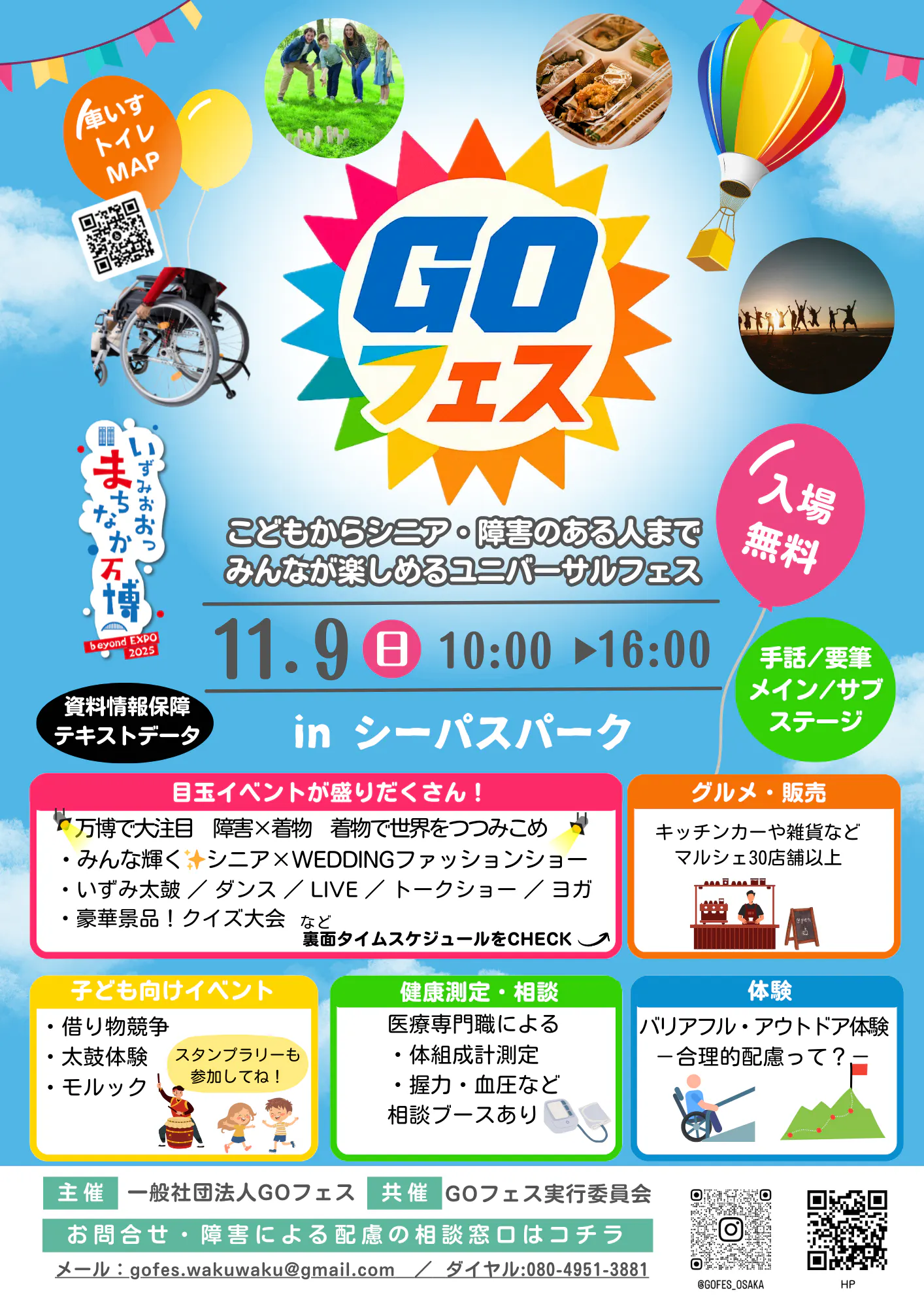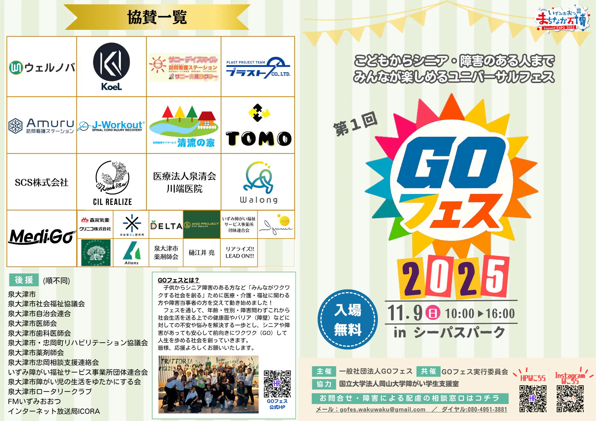 タイムスケジュール2025年11月9日、大阪・泉大津のシーパスパークで”GOフェス”の第1回目を開催します。