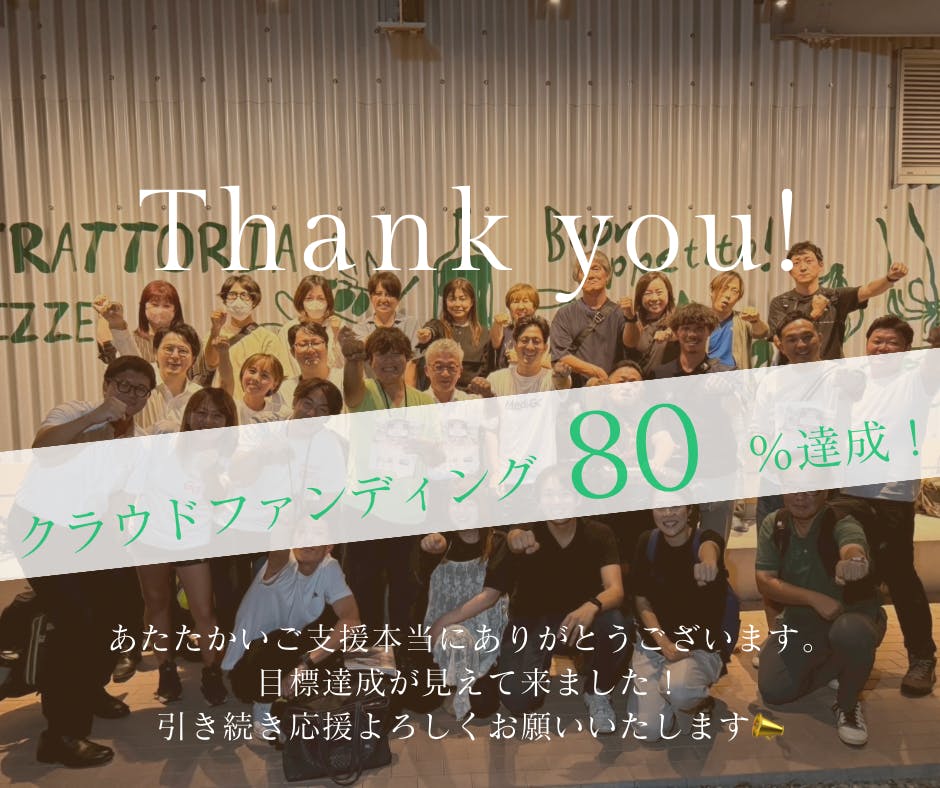 皆さまからのあたたかいご支援のおかげで、ついに目標の 80% に到達することができました。