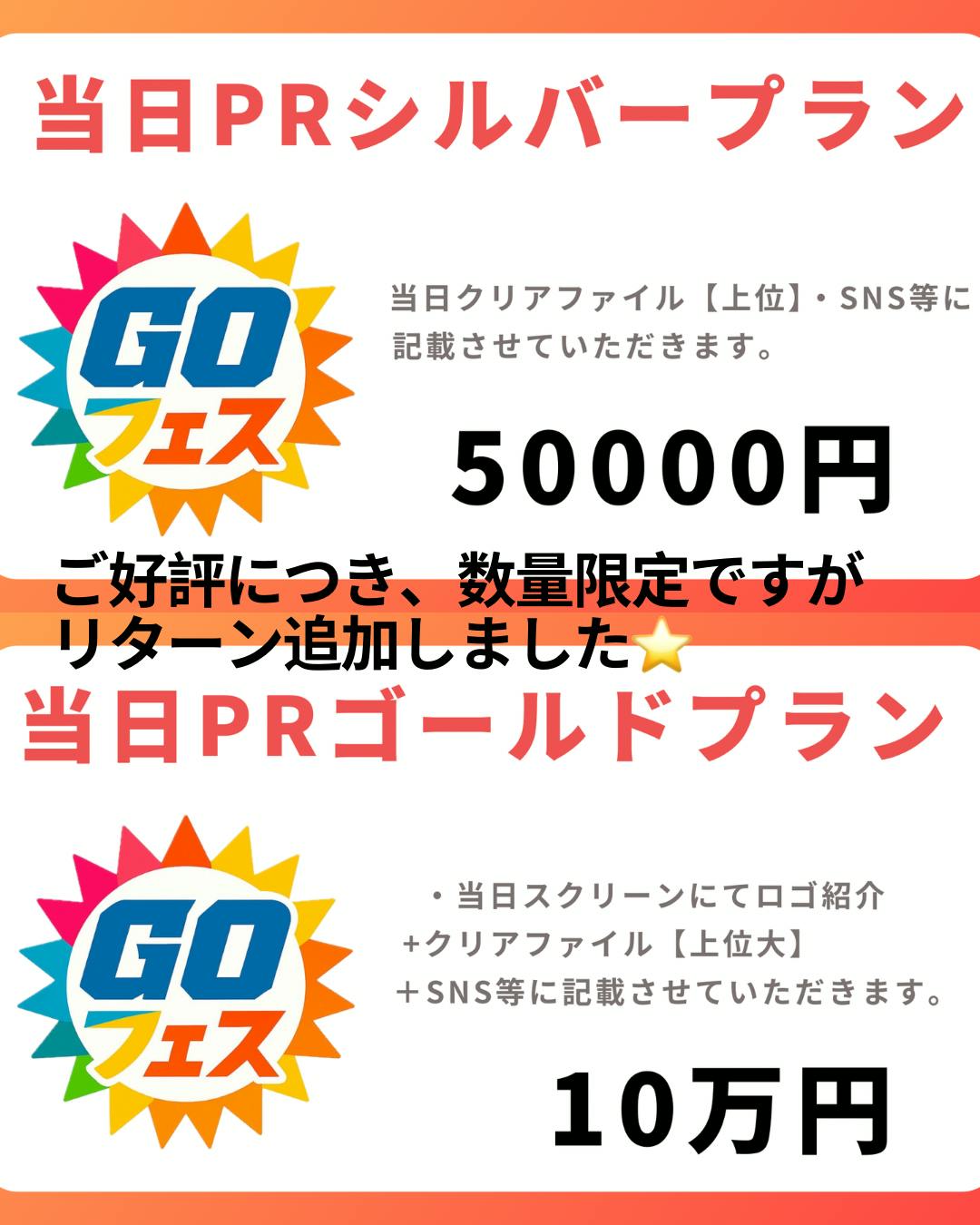 このたび、ご好評につき 数量限定で「当日PRリターン」プランを追加 いたしました。