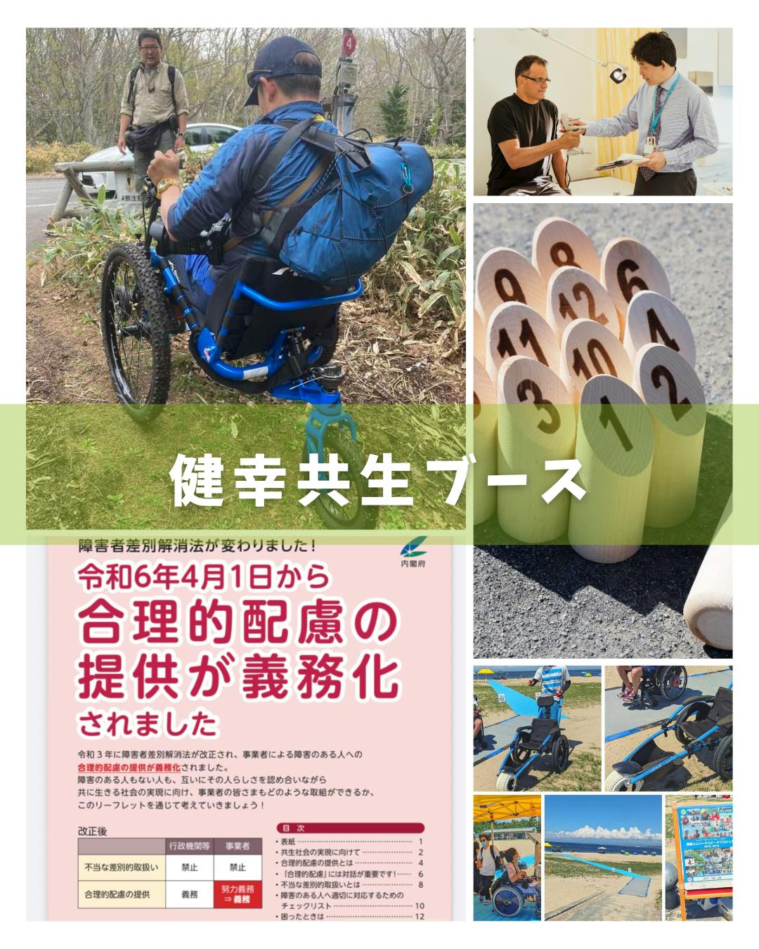 各専門職のブースや、車いす体験、合理的配慮について、医療、介護、障害の共生を深めるステージ