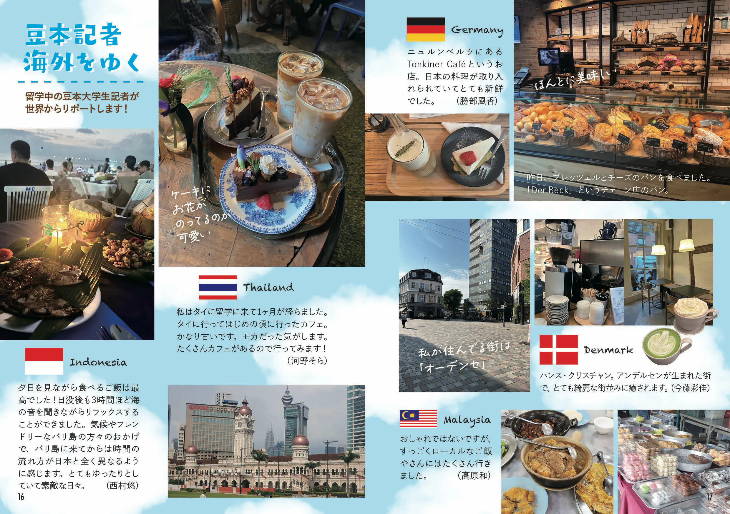 第7弾「山口市カフェ&カレー豆本」の大学生記者14人のうち、山口大学人文学部、国際総合科学部の記者仲間が海外(デンマーク、ドイツ、インドネシア、タイ、マレーシア)に留学しています。