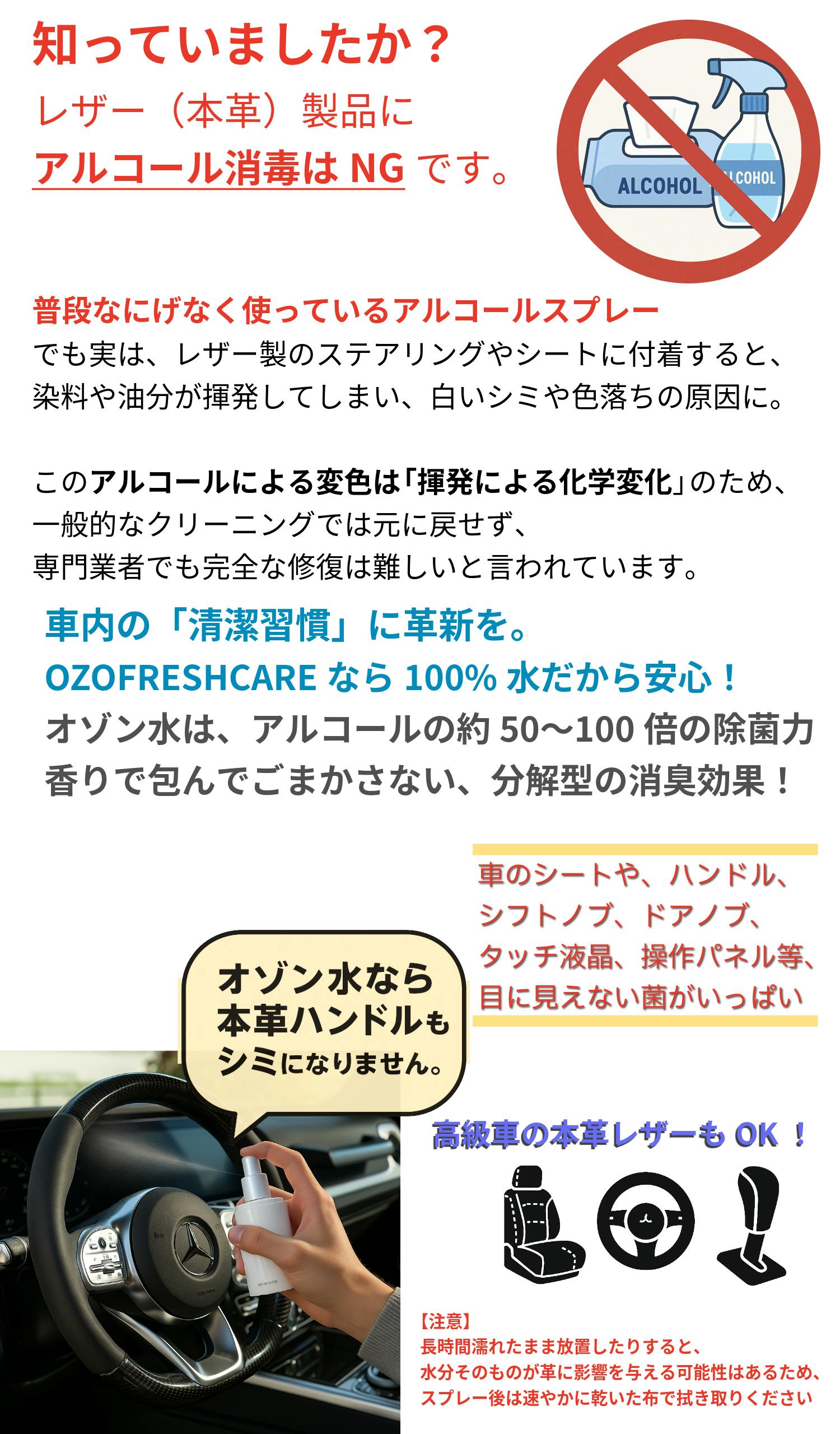 大切な家族(幼児・ペット)にも安心して使える製品として、「適正濃度」と「第三者機関エビデンス」を両立している点がOZOFRESH CARE の強みです。