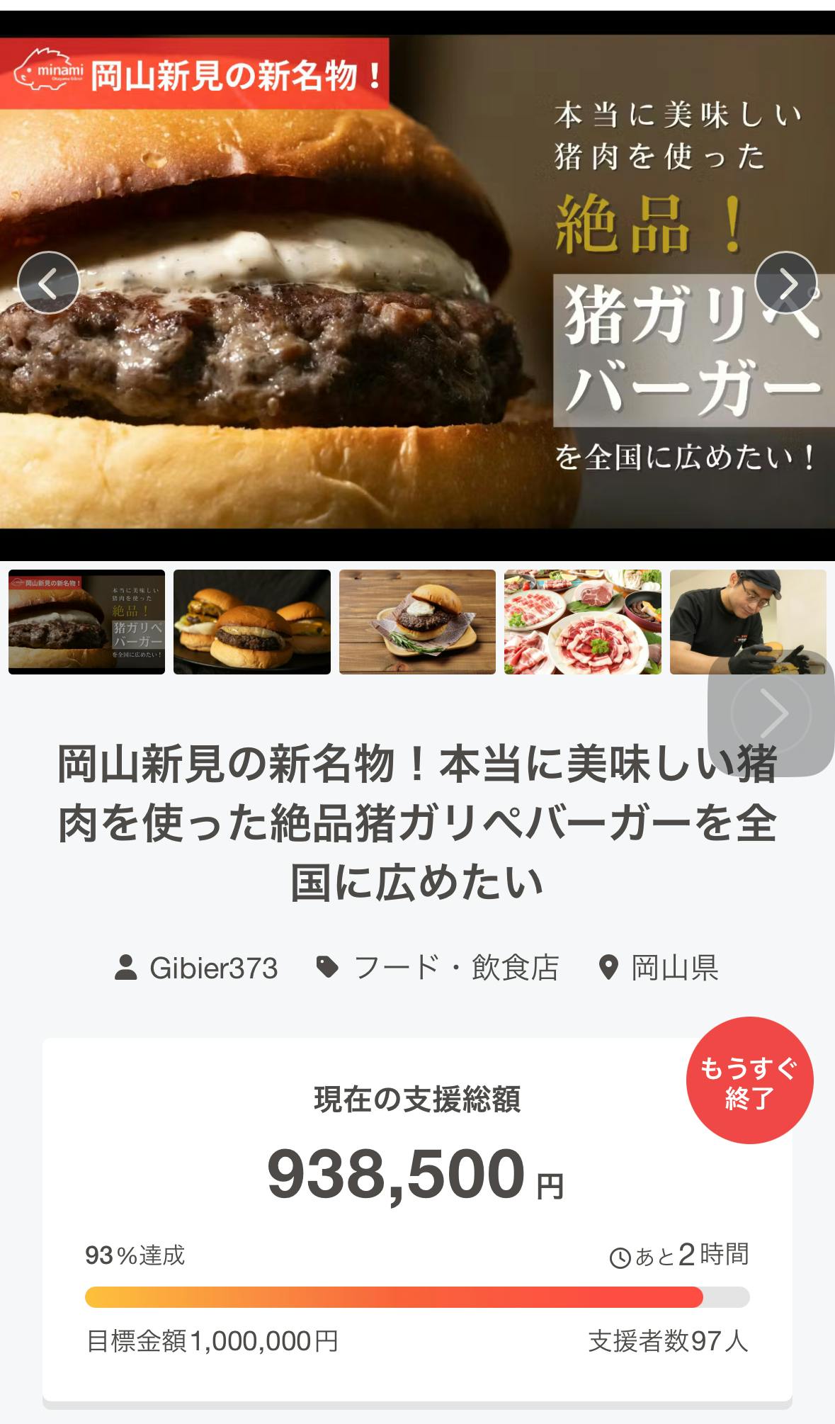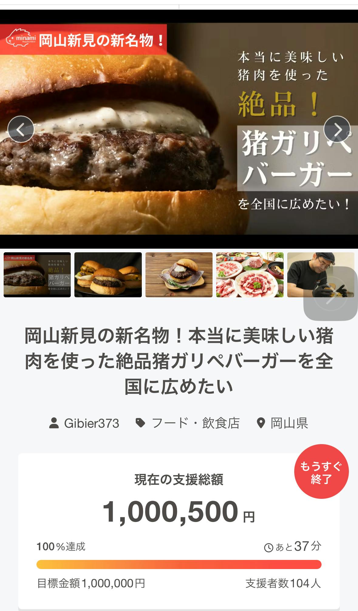 2025/09/15 10:50こんにちは!おかやまジビエみなみです!ついに支援を募る期間が終わりました。そしてなんと!ギリギリではありますが目標を達成することができました!ご支援ご協力をくださった皆様方心の底から感謝申し上げます。リピート品のお渡しはもちろんの事として今後の動向もお伝えできればと思いますので引き続き、おかやまジビエみなみと猪ガリペバーガーの応援をよろしくお願い致します。…無事達成できてよかったぁ( ̄▽ ̄;) もっと見る