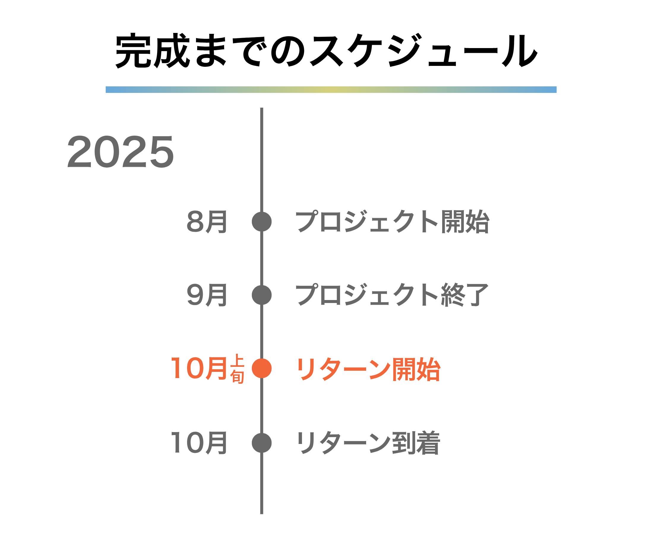 ※本文中に記載させていただいたスケジュールは、あくまでプロジェクト公開時点の予定です。クラウドファンディングを経て輸入を行う性質上、配送遅延のおそれがございます。
