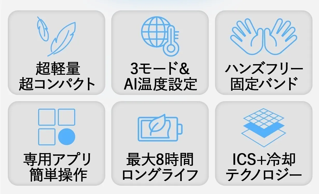 ネッククーラーは首にしか使えないし、手持ち式のハンディクーラーは手が塞がってしまう…そんなお悩みをQOOLA Proが解決します!