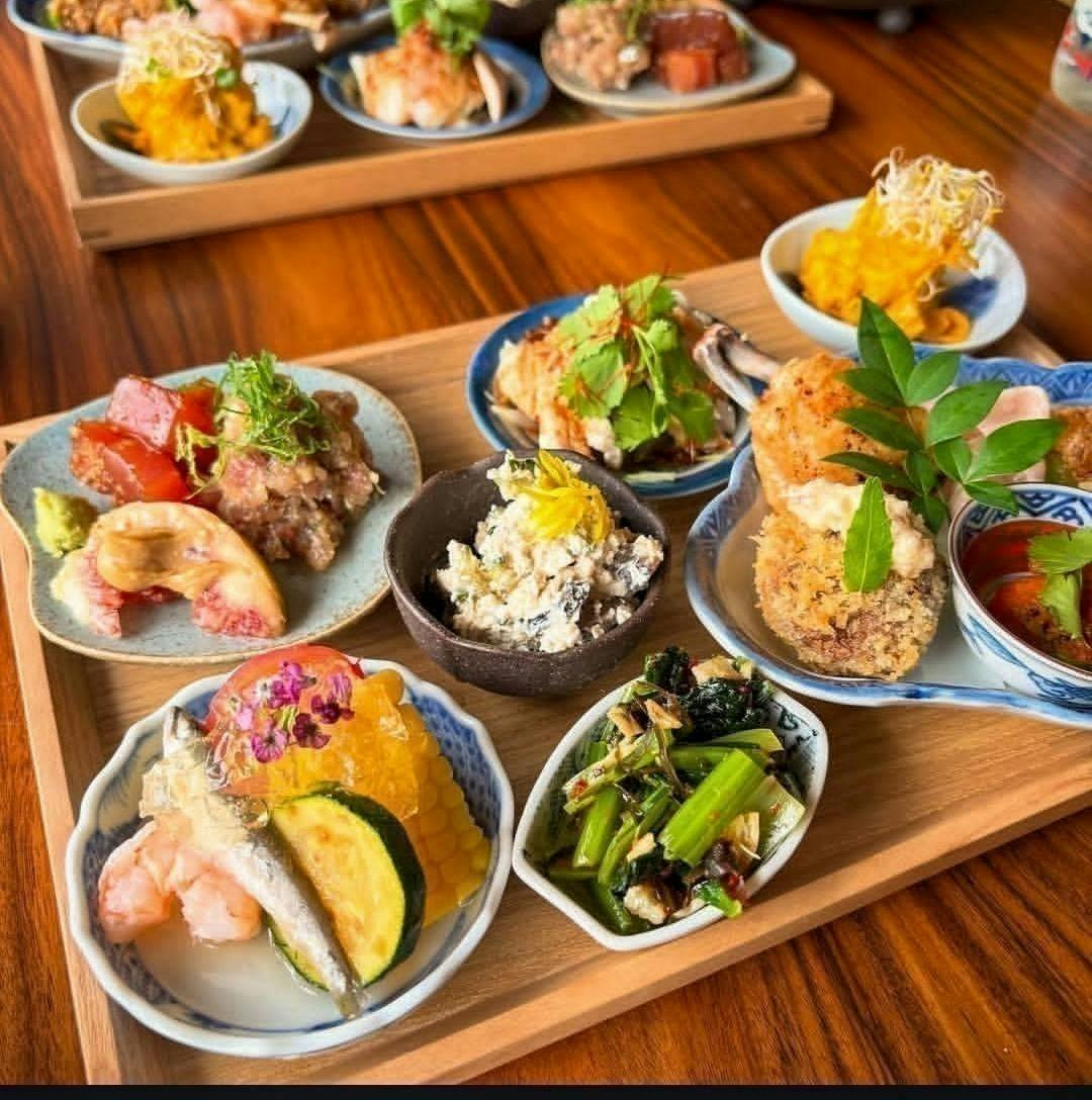 ランチでは、少しずつ色々なお料理を味わっていただけるように、旬の食材を彩り豊かに盛り込んだ「おばんざいランチ」をご提供させていただきました。