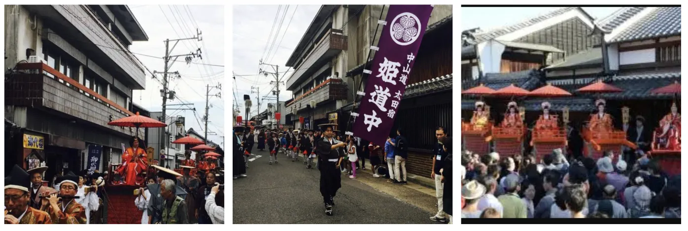 秋には太田宿中山道まつりが開催され14代将軍徳川家茂に嫁がれた「皇女和宮」様を中心に歴代の将軍に嫁いだ6人のお姫様や武士、奴に扮した100人以上の降嫁行列を再現した「姫道中」が楽しめます。