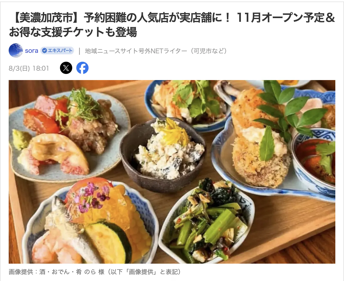 そして、この度、大変光栄なことに、Yahoo!ニュースにて『予約困難の人気店が実店舗に!』という見出しで、11月に開業予定の『のら』が大きく取り上げられました!ライターさんの率直な感想も書かれています!