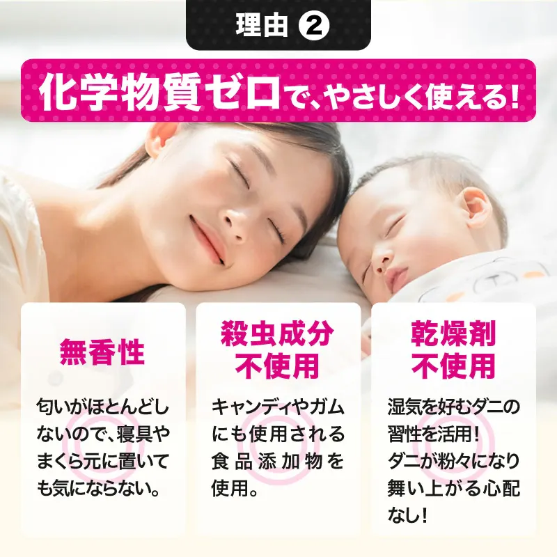 さよならダニーは殺虫成分不使用&無香料でお子さまやペットがいても安心