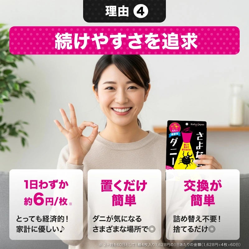 不要な外箱をなくすことで、ゴミを減らし、環境にもやさしい、スマートなダニ対策をお届けします!