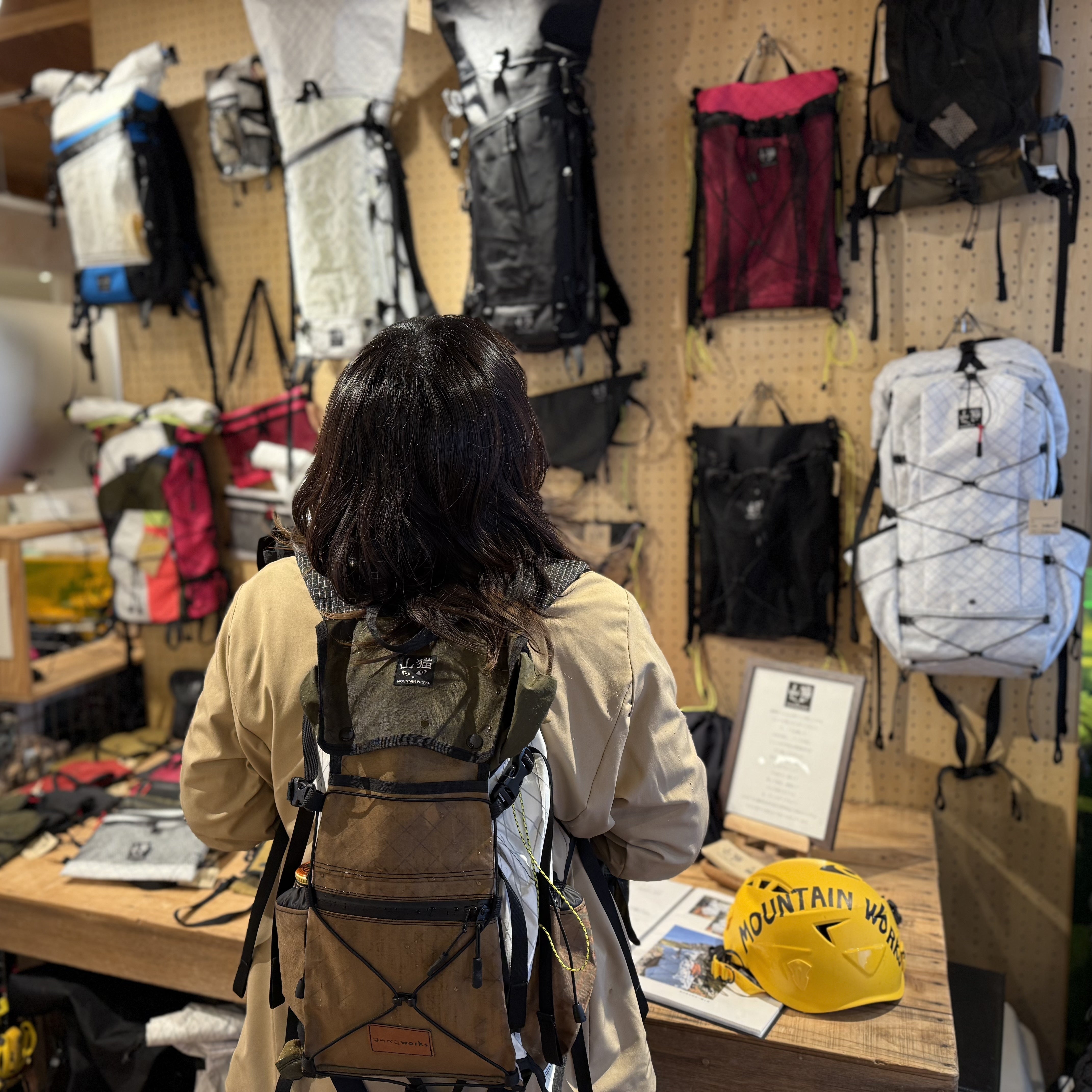 一つひとつ手作りのため、イベント参加の負荷が相当高いことはいろいろ話しを聞いていたこともあり知ってはいました。そのため、場合によってはザックなどの販売アイテムはおかず、ブランド紹介だけでも会場内でできればと考えていました。