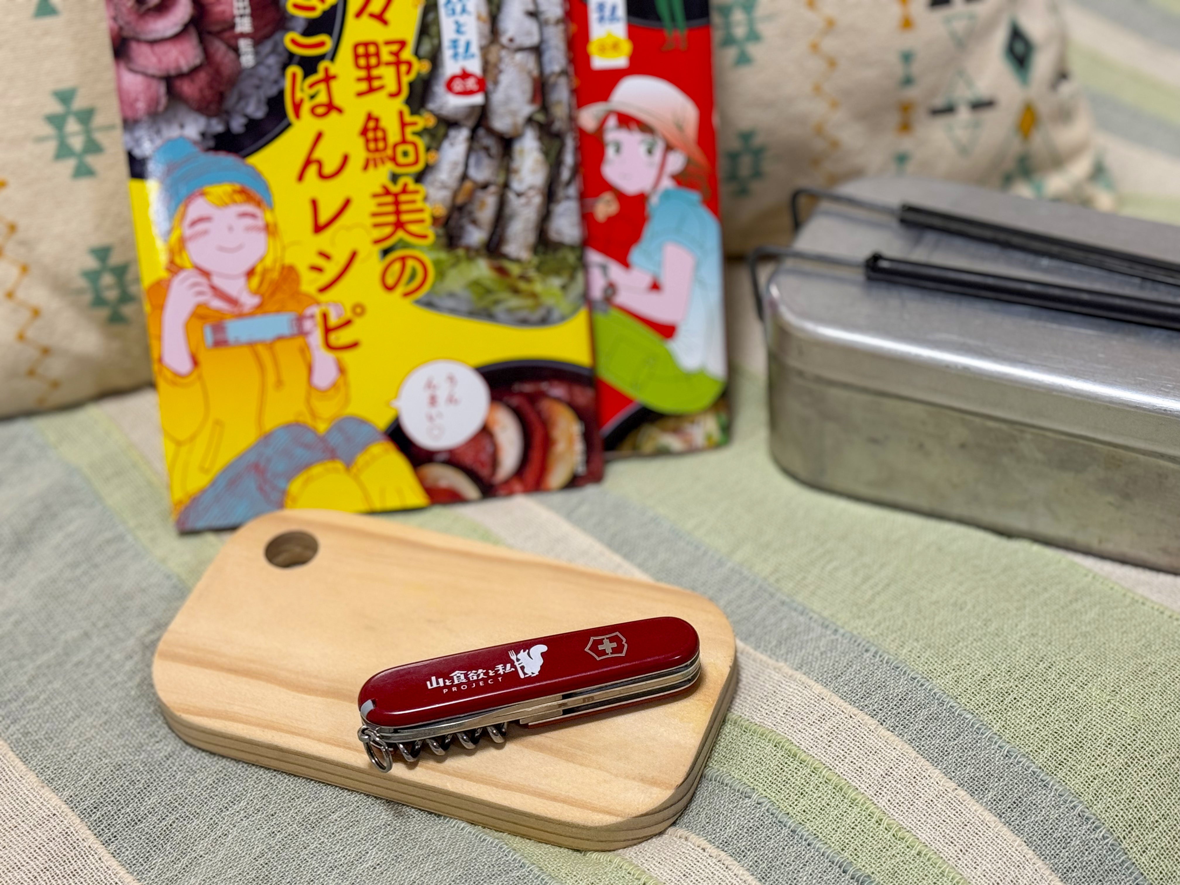 気を取り直して、「山の食欲と私」の公式グッズと言えば、ファンの方ならご存知かもしれませんが、ただのファンアイテムではありません。ちゃんと山だったリ、アウトドアで使えるしっかりとしたアイテムが揃っているのが特徴です。このお話をいただく前から、山食グッズとして販売されているビクトリノックスのマルチツールやゴミの持ち運びに便利な「清潔山荘」などは今も愛用し続けています。