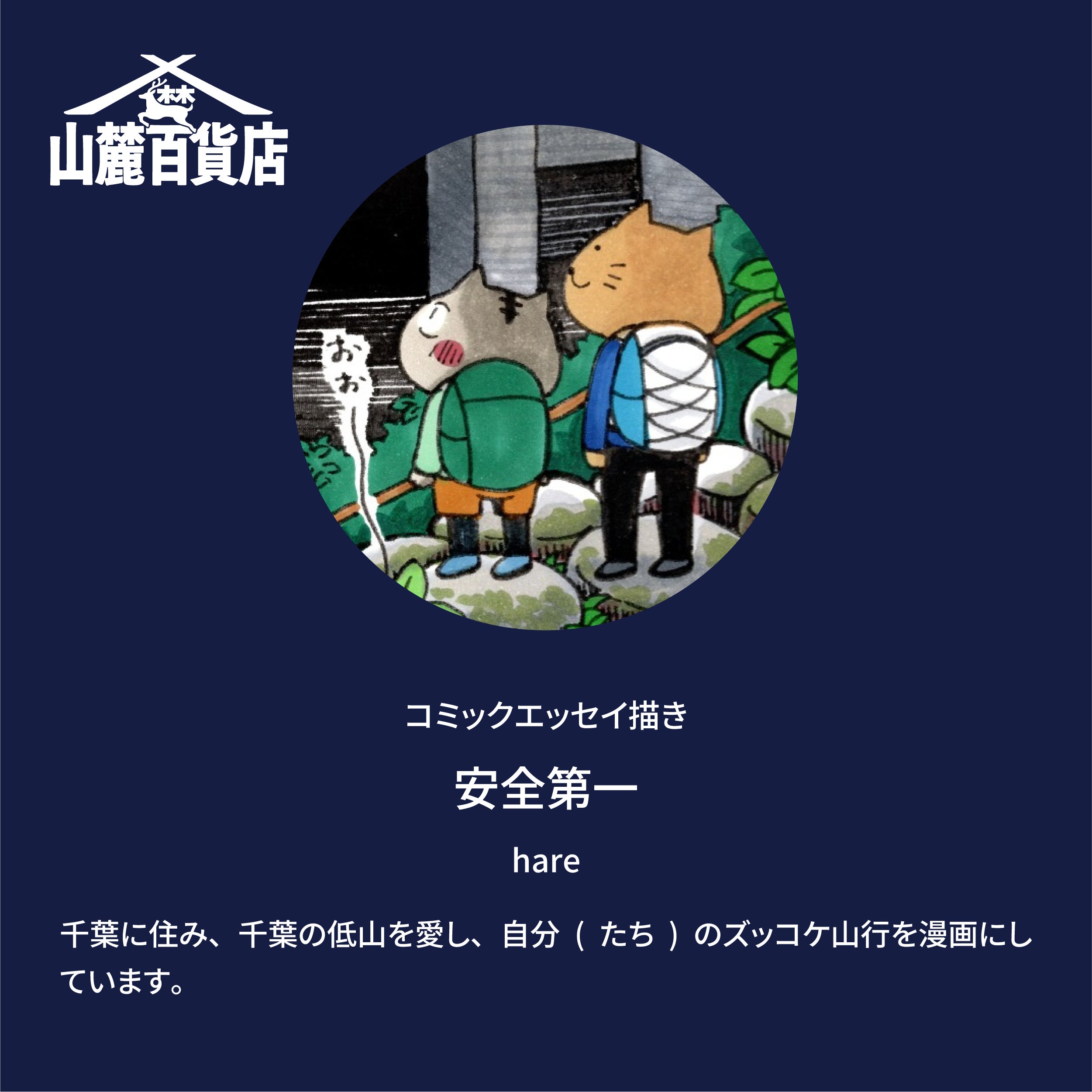 活動報告の一環として、山麓百貨店出店者の方々の情報をお伝えしていきたいと思います。今回は、千葉県は南房総の山々をコミックエッセイで紹介してくれるhareさんについて書かせていただきます!読んで植え付けられた「鋸山に行きたいスイッチ」 一般的にはあまり登山のイメージがない千葉県ですが、県南端の南房総エリアは標高こそ低いもののいくつもの山々が連なります。ということを、hareさんのコミックエッセイ「南房総ゆるゆる登山・鋸山編」で知りました。 これまであまり注目していないエリアでしたが、ほのぼのとしたタッチと勢いのある展開で「千葉の山っておもしろそう!」とぐいぐい引き込まれました。この本を読んで以来、鋸山に登りたい熱が高まり、気が付けば「鋸山に行きたいスイッチ」が埋め込まれてました。そして、あるときカチッとスイッチが入ったもんですから、気が付けば鋸山を登っていました。hareさんが描いていた通り、他の山にはない魅力にあふれていて、スイッチを植え付けてくれたことにありがとうと言いたいです!鋸山に行きたいスイッチ搭載「ゆるゆる登山」の聖地巡礼で訪れた鋸山なんだか他人じゃないような登山スタイルに共感 私たちはらぺこworksも夫婦で登ることが多く、また、高い山も好きですが低山にも魅力を感じてよく登りです。私たちは二人ともゆるゆる系で、hareさんのところのボスはスピードハイカーなのでもちろん違いはあるのですが、山との向き合い方、山だけではなく麓を含めた文化だったり、おいしいものだったり、興味の持ち方がものすごく共感できます。 だから、hareさんがコミックエッセイで取り上げる山は、私たちにとってどれもこれも魅力的。価値観が似ているのかな、と思うほど付随する情報も知りたいことばかり。さらに、作品としても軽快でおもしろい!自分たちで開くイベントではありますが、早く山麓百貨店でhareさんの作品を手に取りたいですね。hareさんのXアカウントはこちらから。