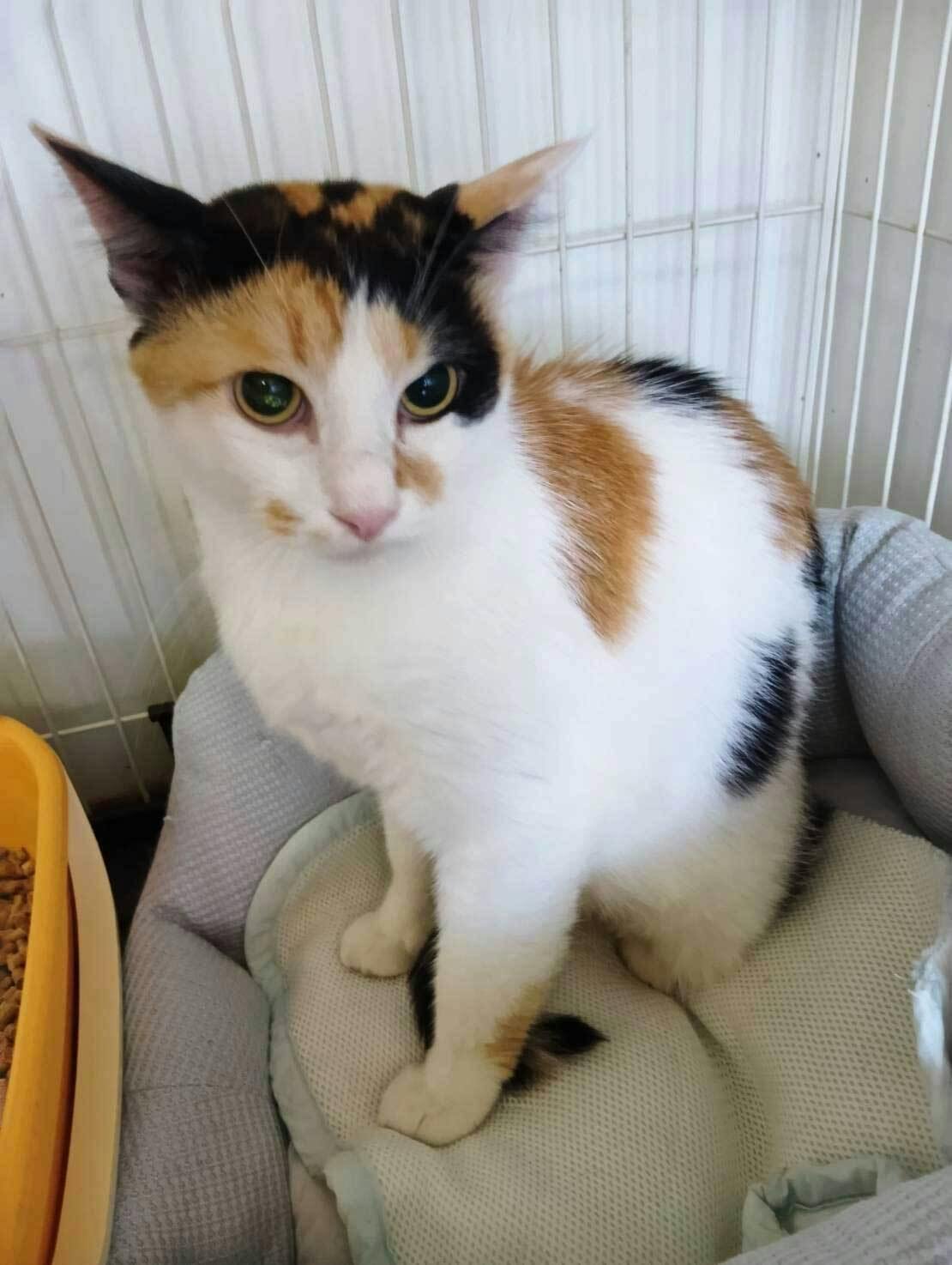 ▼母猫のタヌちゃん。まだ緊張した表情です。