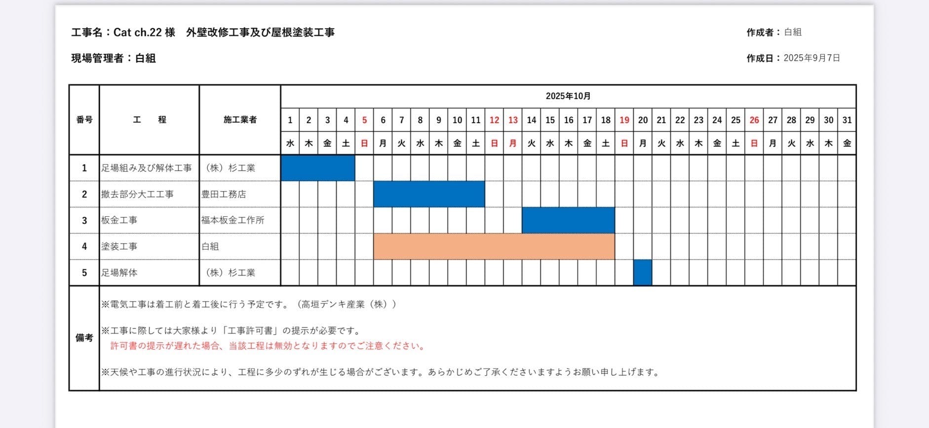 日程表が届きました。