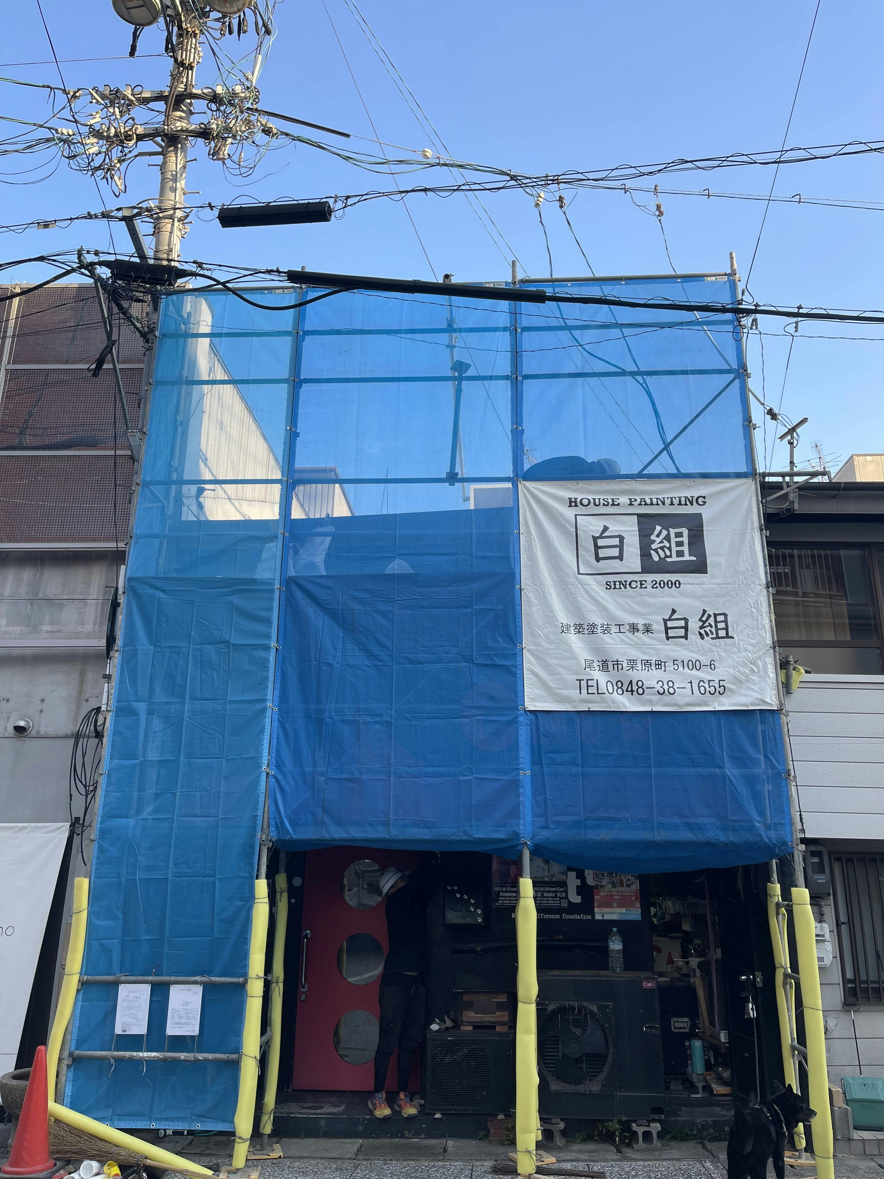 朝から足場を組み、