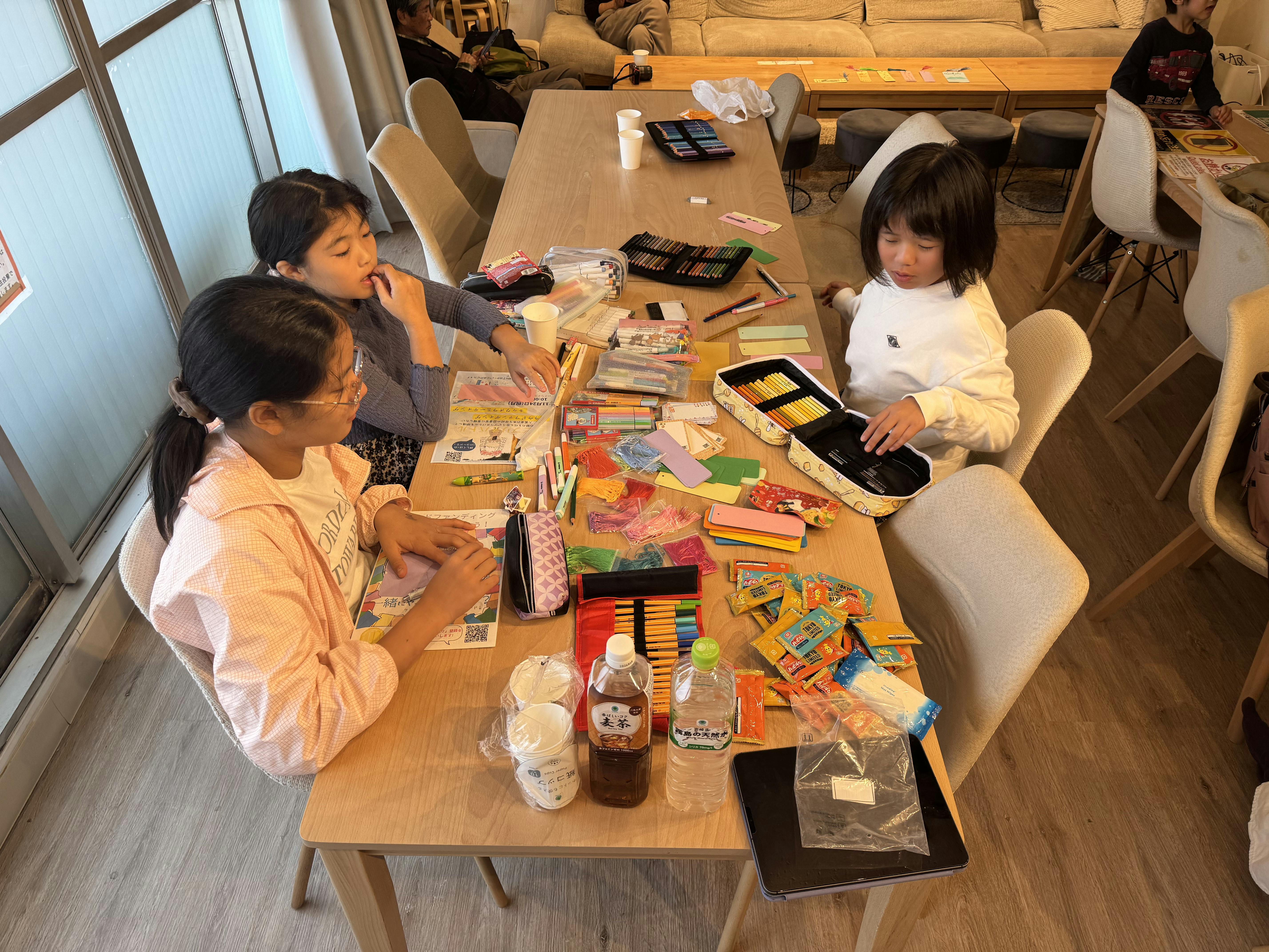 先日、子供たちが集まりまして、めいめいが考えるメッセージカードやしおりを作成していました。