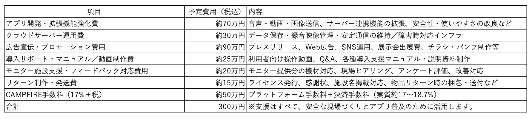 ■ 支援金の使途内訳(目標金額:300万円)